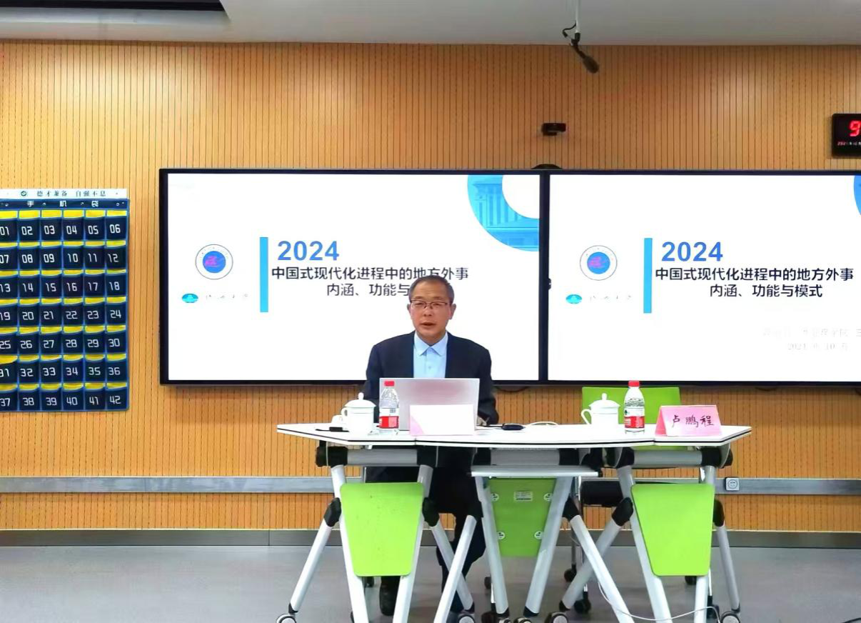 王毅教授在讲座中首先阐释了对中国式现代化的理解,以及“两个大局”时代背景下推动高质量发展、加快中国式现代化建设的紧迫性。随后,他结合丰富的调研案例,深入讲解了地方外事的概念内涵、核心功能和工作模式。他指出,党的领导是外事工作的本质特征,公共性是地方外事工作的必然属性。地方外事的基本功能主要集中在经济与政治等方面,当前地方外事的基本模式大致可分为国内、国外两个面向。