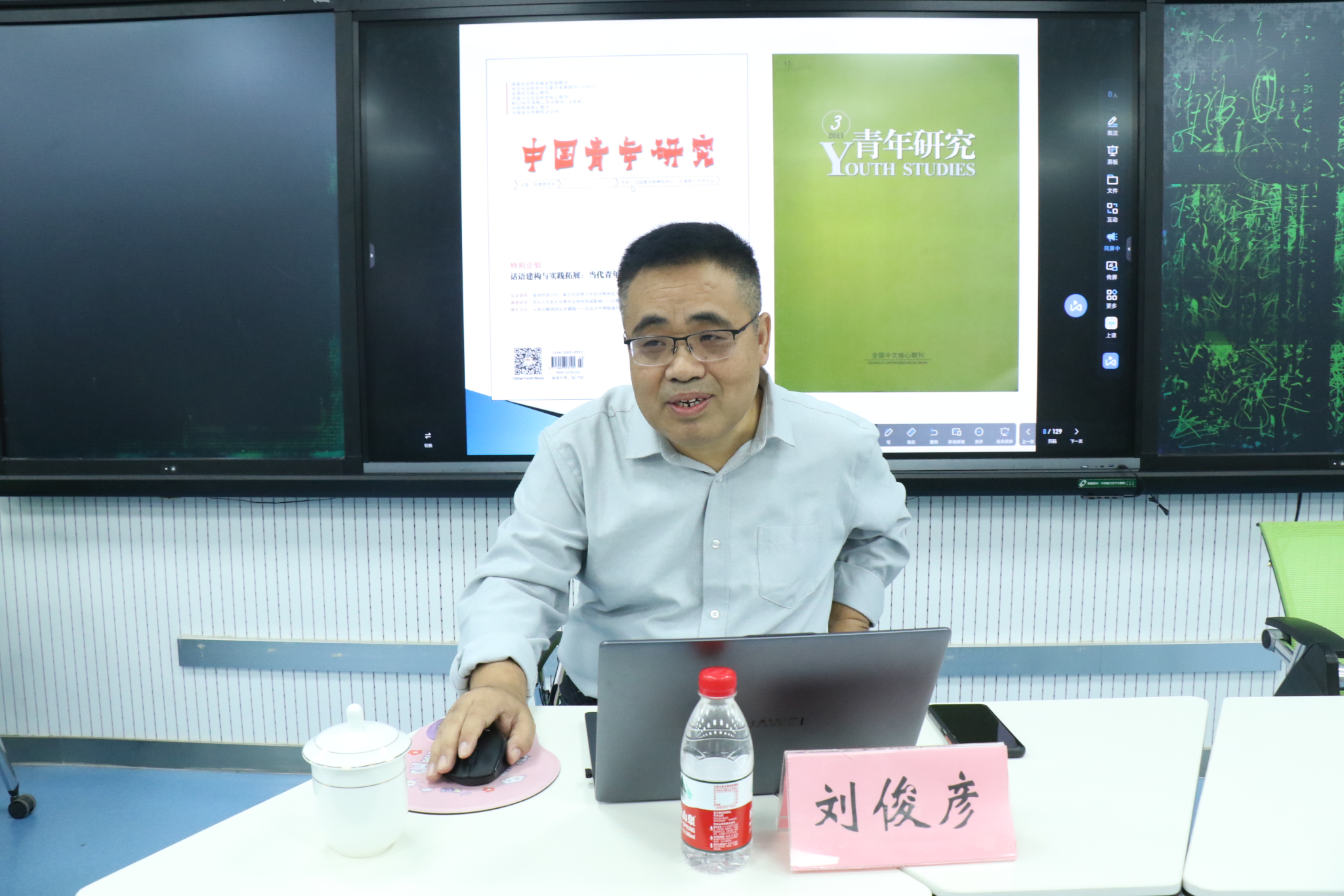 刘俊彦研究员与学院教师共同探讨了“青年研究的重点与选题”,从青年研究的定义与范围、选题方向,青年研究的前沿和重点领域等多个方面展开分析,强调青年研究应当关注青年群体的多样性和复杂性,以及他们在全球化背景下的特定需求和挑战。本次讲座有助于激发教师学习前沿理论,推动教师写作水平的提升。王玉香教授鼓励各位老师从此次讲座中汲取养分和力量,积极投身青年研究工作当中。
