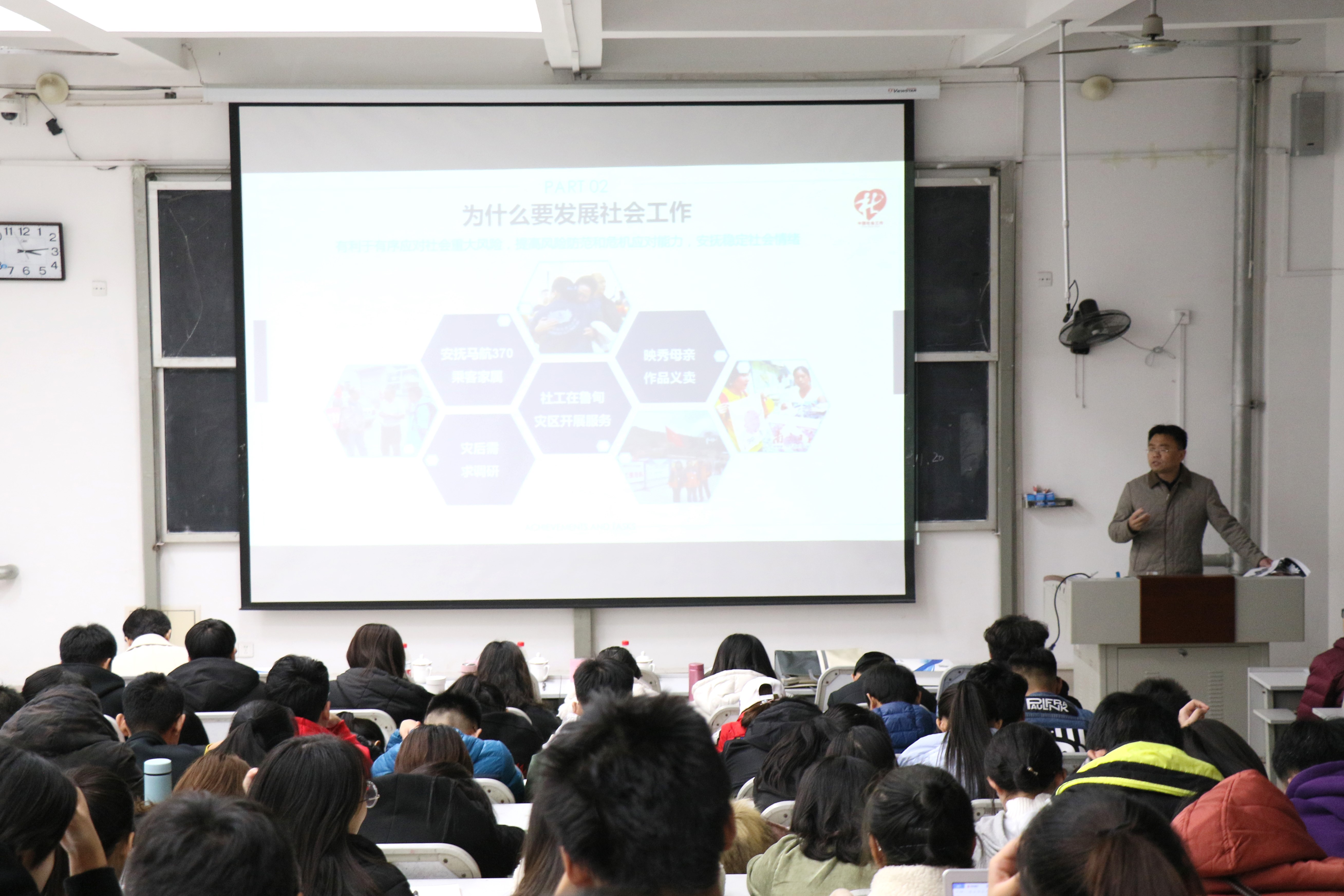 报告会上,杜红波主任以诙谐幽默的口吻,就为什么要发展社会工作、我国社会工作的现状及发展社会工作的思路等方面与大家作了深入的探讨与交流。杜主任结合自身工作经历,多次强调“助人自助”的社会工作内涵,并就当前民政领域社会工作的发展现状和前景与大家做了梳理与分享。