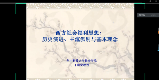 5月15日上午,由yl88858永利中国科研处主办,yl8858永利集团、山东省社区发展与社会工作研究中心承办的第七十五期学术前沿论坛暨第四十二期社区治理论坛通过腾讯会议系统举办。华中科技大学社会学院院长、博士生导师丁建定教授应邀做了题为《西方社会福利思想:历史演进、主流派别与基本理念》的讲座。本次论坛由政管学院院长王玉香教授主持,政管学院部分师生参加。