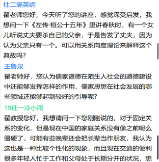 在交流互动环节中,师生们踊跃提问,翟学伟教授进行了耐心细致的解答。