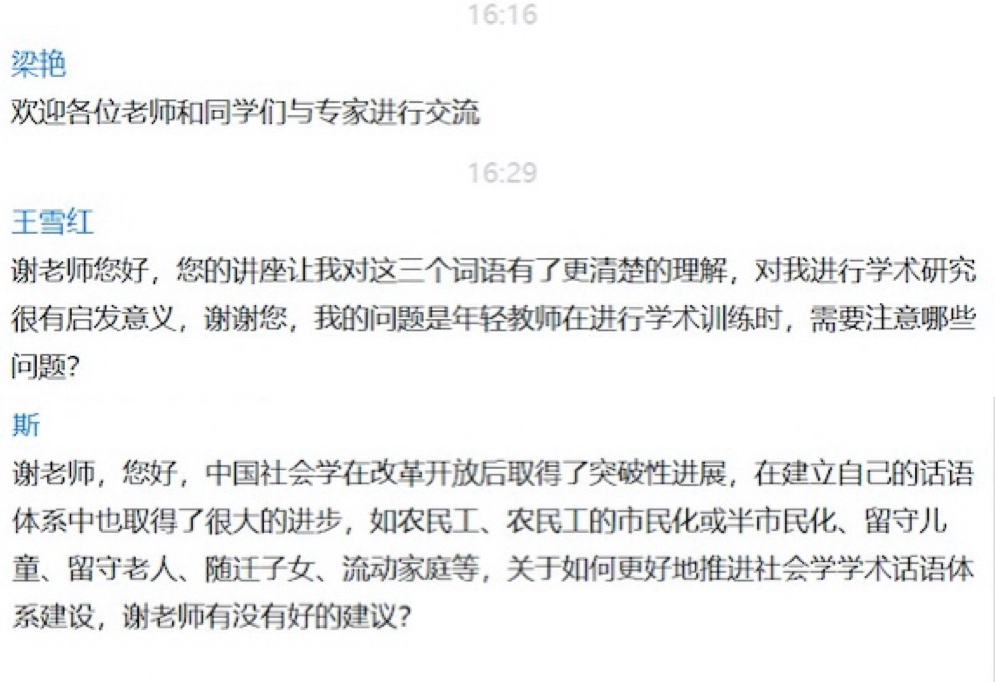 在交流互动环节中,师生们踊跃提问,谢立中教授进行了耐心细致的解答。