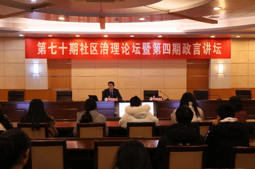12月31日下午,由yl8858永利集团和山东省社区发展与社会工作研究中心举办的第七十期社区治理论坛暨第四期政言讲坛在图书馆学术会议厅召开。山东省民政厅社会组织管理局副局长姬升峰同志应邀做了题为《社会组织形势政策任务》的专题讲座,yl8858永利集团教师代表、学生代表参加本次活动,活动由yl8858永利集团院长王玉香主持。