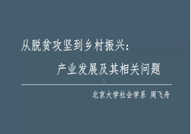 周飞舟教授从中国脱贫攻坚的历程谈起,他指出,中国的贫困发生率从改革开放初期开始逐步下降,近年来的减贫推进速度更快,到2020年底实现中央提出的脱贫攻坚战目标。政府推动国家资源和社会资源对基础设施和公共服务进行全面改善从而促进了劳动要素流动和人员外出,但因种种原因难以外出的人员和家庭成了脱贫攻坚的壁垒,乡村产业就成了脱贫和振兴的关键。那么,该如何推动乡村产业发展呢?周教授指出,一方面要解决资本、技术、市场等生产要素,这些生产要素在“脱贫攻坚”和“资本下乡”两股力量下有了较大程度的改善;另一方面则需要解决“人”的问题。周教授结合在湖南永州等四地的实地调研生动展示了乡村产业发展的四种样态,并得出结论:乡村振兴的前提是建立健康可持续的乡村产业,形成产业带体系和公共服务体系。