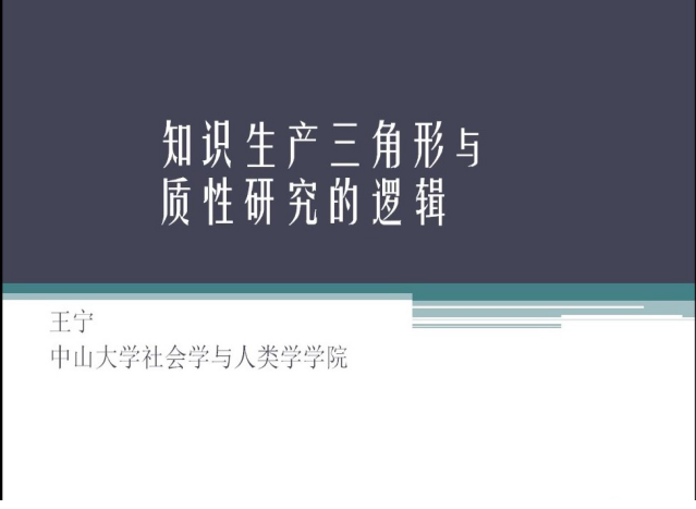 王宁教授先援引洛夫兰德关于知识生产的论述,阐释了涵盖资料投入、社会科学投入、社会科学产出三要素的知识生产三角形理论。接下来,王教授分析了社会科学投入的质性研究逻辑,他指出,知识生产秉承的是知识贡献原则,这要求每一篇正式学术论文都要有所创新,即在存量知识基础上提出增量知识。我们如果要提出增量知识,就必须要有社会科学投入。而社会科学投入的方式主要有将经验问题转化为学术问题的提升策略和解决存量知识解释不连贯的内部困惑对话策略两种。随后,王教授以访谈方法为例介绍了资料投入的质性研究逻辑,即资料收集与分析循环进行,在资料收集的早期进行资料分析,尽早让理论框架浮现出来,再借助这个框架来指导接下来的抽样和资料收集过程。最后,王教授分析了社会科学产出的质性研究逻辑。他指出,质性资料分析主要采取理论溯因的策略去寻求理论解释。理论是概念模型,理论形成涉及两个步骤,一是形成概念,二是把概念连接起来。王教授强调概念化能力来源于研究者的理论敏感性,而理论敏感性的提升以广泛阅读和跨学科阅读为基础。