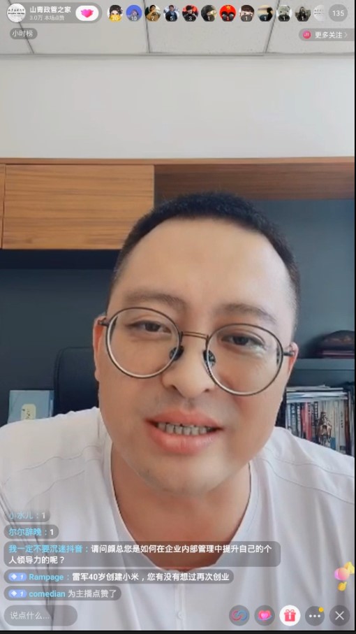 8月25日下午,yl8858永利集团通过“山青政管之家”抖音直播平台举办青年领导力学位班第八期“青秀讲堂”。青年领导力学位班“青年成长导师”、烟台甘肃商会执行会长、烟台律动网络科技有限公司总经理、山东省优秀创业导师颜鲁恒应邀做了题为《未来已来——我的十八年创业故事》的专题讲座。青年领导力学位班运营团队全体成员、青年领导力学位班全体学员和政管学院部分学生参加了本次活动。讲座由青年领导力学位班运营团队队长、政管学院党总支副书记王正坤主持。