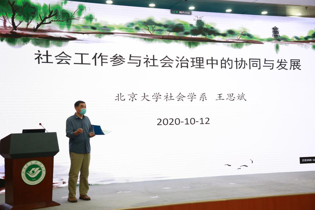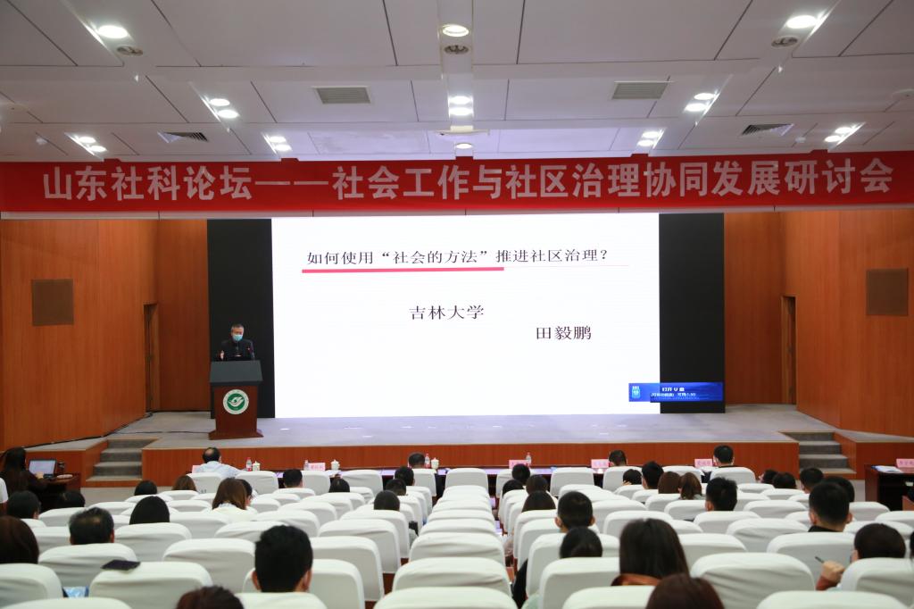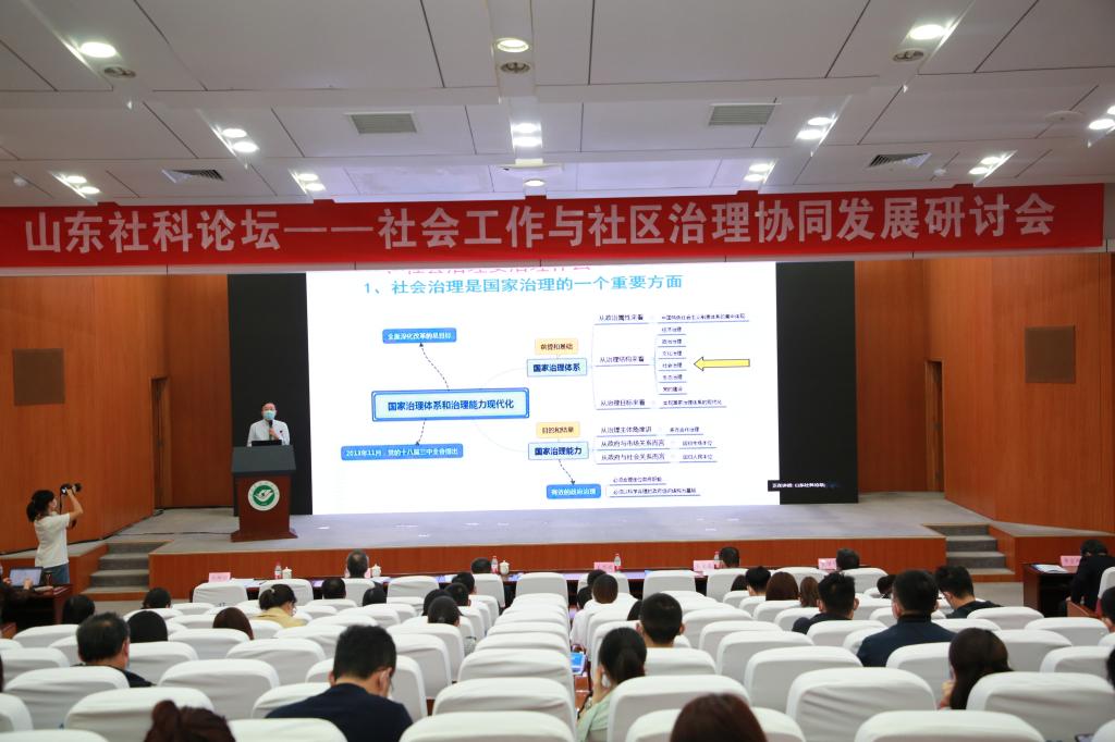2020年10月12日,由山东省社会科学界联合会主办,yl88858永利中国、山东省社会科学发展交流中心承办的山东社科论坛——社会工作与社区治理协同发展研讨会在我校成功举行。山东省社科联党组副书记、副主席、一级巡视员周忠高,我校党委副书记、院长张书明出席开幕式并致辞。中国社会工作学会会长、中国社会工作教育协会名誉会长、北京大学王思斌教授,中国社会学会副会长、吉林大学哲学社会学院院长田毅鹏教授,中国社会工作教育协会副会长、中国青年政治学院社会工作学院院长陈树强教授应邀出席会议并作主旨发言。开幕式由我校副院长陈雨海主持。各地区社区治理研究的专家和代表、全国各大高校社会工作专业师生共150余人参加会议。