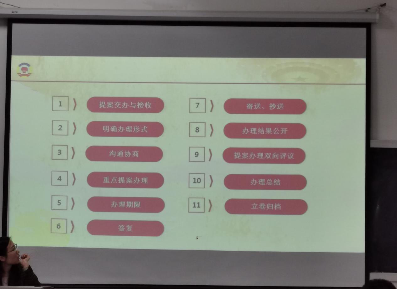 杜海林首先介绍了政协提案的定义、性质、地位及作用,并针对提案的对象、提案的方式、提案的接受、提案的审查立案、提案的办理等要素进行了具体阐释。她提到,提出提案的主体包括政协委员、参加政协的各党派、参加政协的各人民团体和政协各专门委员会四类。接着,她强调提案必须以规范的书面文本形式,通过互联网“提案管理系统”等方式提出,并引出了《提案工作条例》相关规定。随后,她介绍了审查立案的主管部门和立案通过的基本条件,重点阐释了政协提案的六个特点,概括为“六性”:即严肃性、科学性、可行性、规范性、广泛性、经常性。随之,杜海林提到了政协提案的性质、地位和作用,并将其概括为三个方面:政协提案是履行人民政协职能的重要方式;是坚持和完善中国共产党领导的多党合作和政治协商制度的一种重要载体;是协助中国共产党和国家机关实现决策民主化、科学化的一条重要渠道。