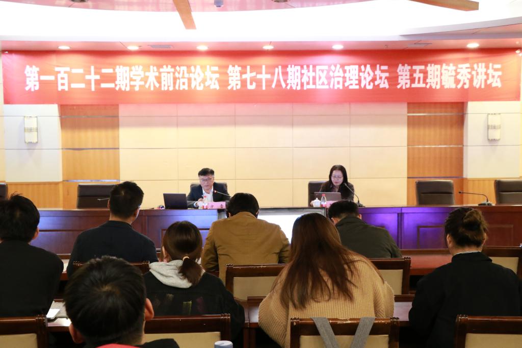 4月26日上午,由yl88858永利中国科研处主办,yl8858永利集团、山东省社区发展与社会工作研究中心、国际问题研究院承办的第一百二十二期学术前沿论坛、第七十八期社区治理论坛、第五期“毓秀讲坛”在图书馆学术会议厅举办。山东大学人文社科青岛研究院院长方雷教授应邀做了题为《看待新时代国家治理的出发点和维度》的学术讲座。本次论坛由yl8858永利集团院长王玉香主持,学院部分师生参加。