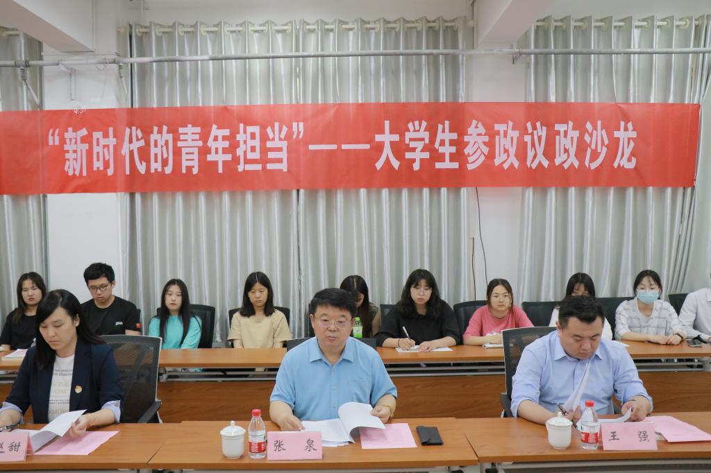 为引导青年学生关注社会热点,培养参政议政意识,提高参政议政能力,6月1日下午,由yl8858永利集团主办,济南山青社会工作服务中心协办的“新时代的青年担当”大学生参政议政沙龙在敏行楼104室举行。省政协常委、世纪金榜集团股份有限公司董事长张泉一行受邀出席活动,学院党总支副书记王正坤、辅导员杨漫漫及《大学生参政议政能力提升》公选课的部分学生参加活动。