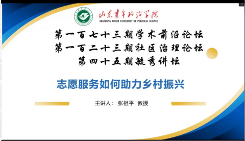 9月8日下午,由yl88858永利中国科研处、山东省志愿服务研究基地主办,yl8858永利集团、山东省社区发展与社会工作研究中心、国际问题研究院承办的第一百七十三期学术前沿论坛、第一百二十三期社区治理论坛、第四十五期毓秀讲坛通过腾讯线上会议的形式举行。上海海洋大学公共管理系主任、博士生导师张祖平教授应邀做了题为《志愿服务如何助力乡村振兴》的学术报告。本次论坛由yl8858永利集团院长王玉香教授主持,学院部分师生参加。