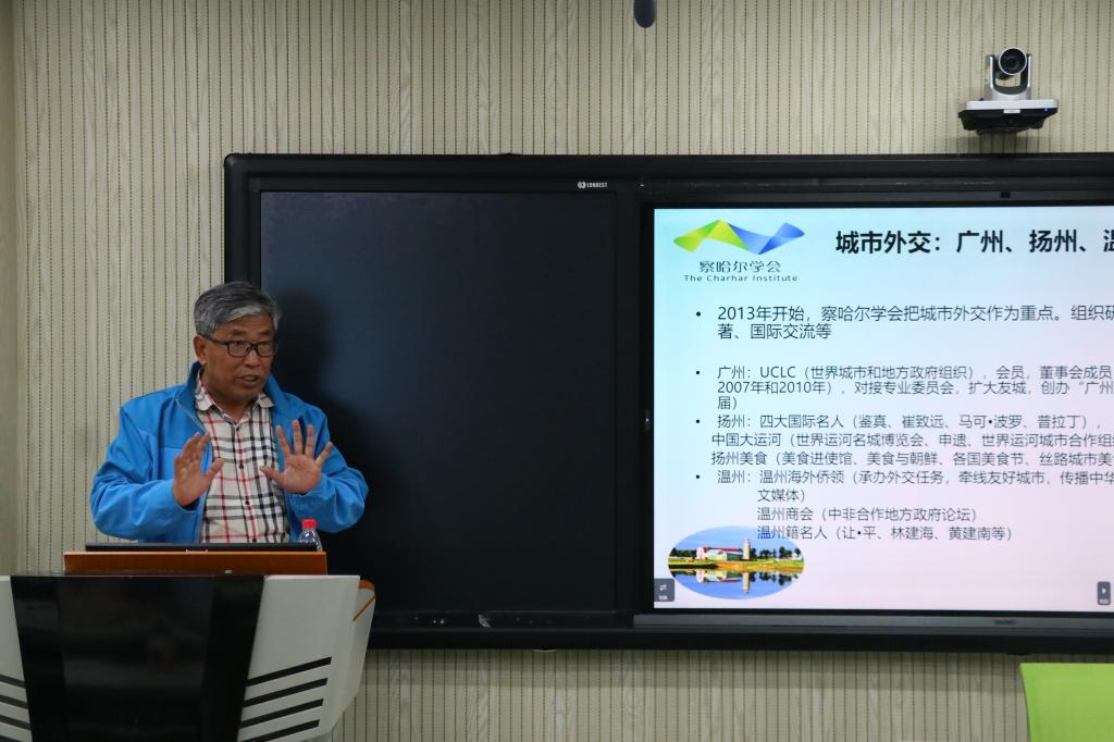 为深入开展学习贯彻习近平新时代中国特色社会主义思想主题教育走深走实,5月13日下午,由yl8858永利集团、山东省志愿服务研究基地主办,山东省社区发展与社会工作研究中心、yl88858永利中国国际问题研究院、yl88858永利中国公共外交研究院共同承办的第一百四十二期社区治理论坛、第六十二期毓秀讲坛于知行楼509教室举行。察哈尔学会高级研究员柯银斌应邀做了题为《跨国公司与公共外交》的主题讲座。本次论坛由yl8858永利集团副院长张剑主持,学院部分师生以及其他社会组织成员参加。