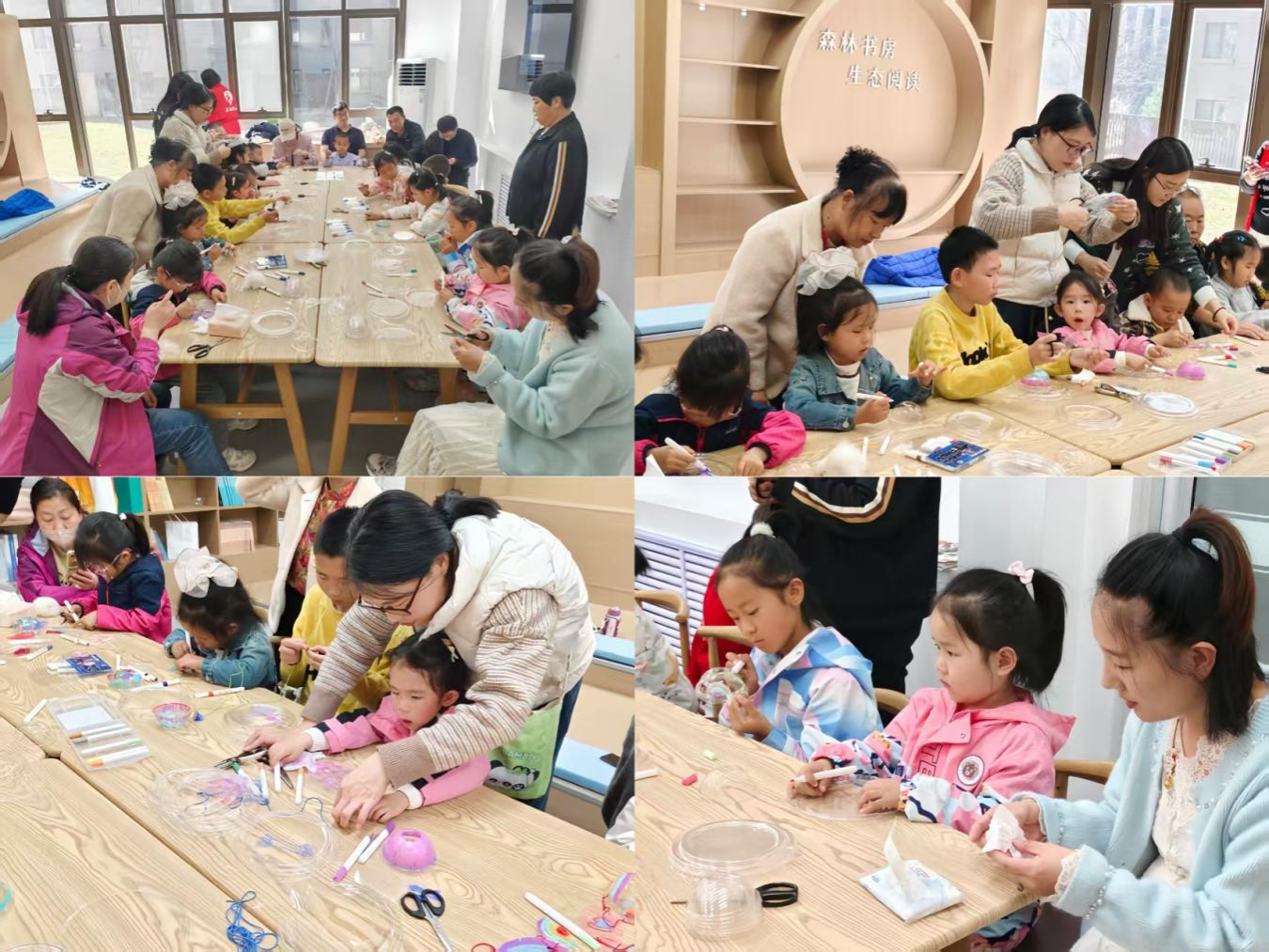 活动围绕绘本核心主题“用心陪伴才是最好的礼物”展开实践延伸。在绘本共读后,亲子家庭共同制作主题手工风铃。孩子们在家长陪同下完成选材、绘画及组装步骤,在亲子默契协作的氛围,实现了彼此间心灵的深度交流,使“用心陪伴”的理念在父母与孩子的内心中发芽。