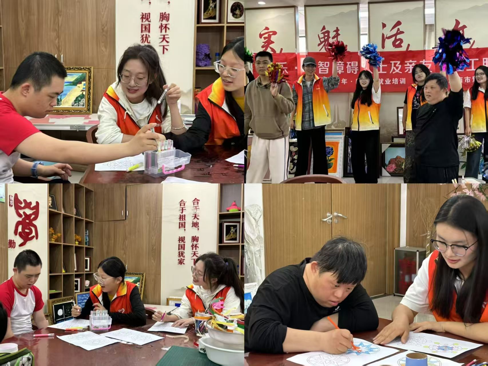 活动开始前,志愿者们首先进行了系统的培训,共同学习了与孤独症患者沟通交流的技巧,以及绘画、跳舞等互动技能。活动过程中,志愿者们积极与孤独症患者进行深入交流。他们耐心倾听孤独症患者的声音,用温暖的话语和真诚的微笑缓解孤独症患者的孤独感,建立起信任的纽带。在绘画环节,志愿者们轻声鼓励,手把手示范,引导孤独症患者发挥想象力进行创作。随着活动的推进,画纸上呈现出各式各样的风格独特的图案,每一笔都勾勒出他们独特的内心世界。这场简单的绘画互动,不仅为孤独症患者搭建了情绪表达的桥梁,还让他们真切感受到来自社会的关爱与温暖。