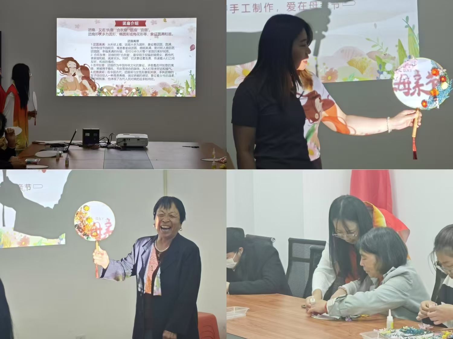 手工筑梦,礼献萱堂。晨之曦社工协会汉韵文化服务队携手中新国际西社区开展母亲节主题团扇DIY活动,志愿者借助PPT,详细地讲解了团扇的历史渊源与制作方法,让参与者对团扇这一传统工艺品有了初步的认识。在制作环节中,参与者全身贯注,从勾勒到装饰,每一步都融入了对母亲浓浓的爱意。活动现场,参与者自豪地展示自己亲手制作的团扇,并分享作品背后承载的对母亲的感恩与祝福,现场洋溢着浓浓的温情与幸福。