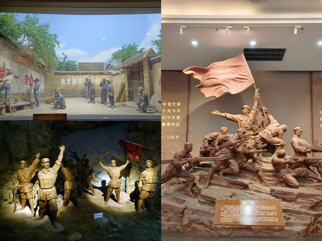 孟良崮战役纪念馆位于山东省临沂市蒙阴县,由纪念馆、烈士陵园、战役遗址区、雕塑园四部分组成。步入纪念馆内,团队成员怀着崇敬的心情依次参观了该馆的门厅、战役厅、支前厅、英烈厅、双拥厅5个展厅,重温革命先辈们浴血奋战的峥嵘岁月。一张张图片、一段段影视资料、一份份档案、一件件历史文物,都在诉说着历史的荣光与变迁,诠释着英雄们的风姿与壮举,既让成员们更加全面地了解了孟良崮战役的始终和重要意义,对“党群同心、军民情深、水乳交融、生死与共”的伟大沂蒙精神有了更加深刻的认识和理解,也让成员们真切体会到:一个有希望的民族不能没有英雄,一个有前途的国家不能没有先锋。天地英雄气,千秋尚凛然。正是因为有了革命先辈们的抛头颅、洒热血,不怕牺牲、舍生忘死,才有了今天的幸福生活。