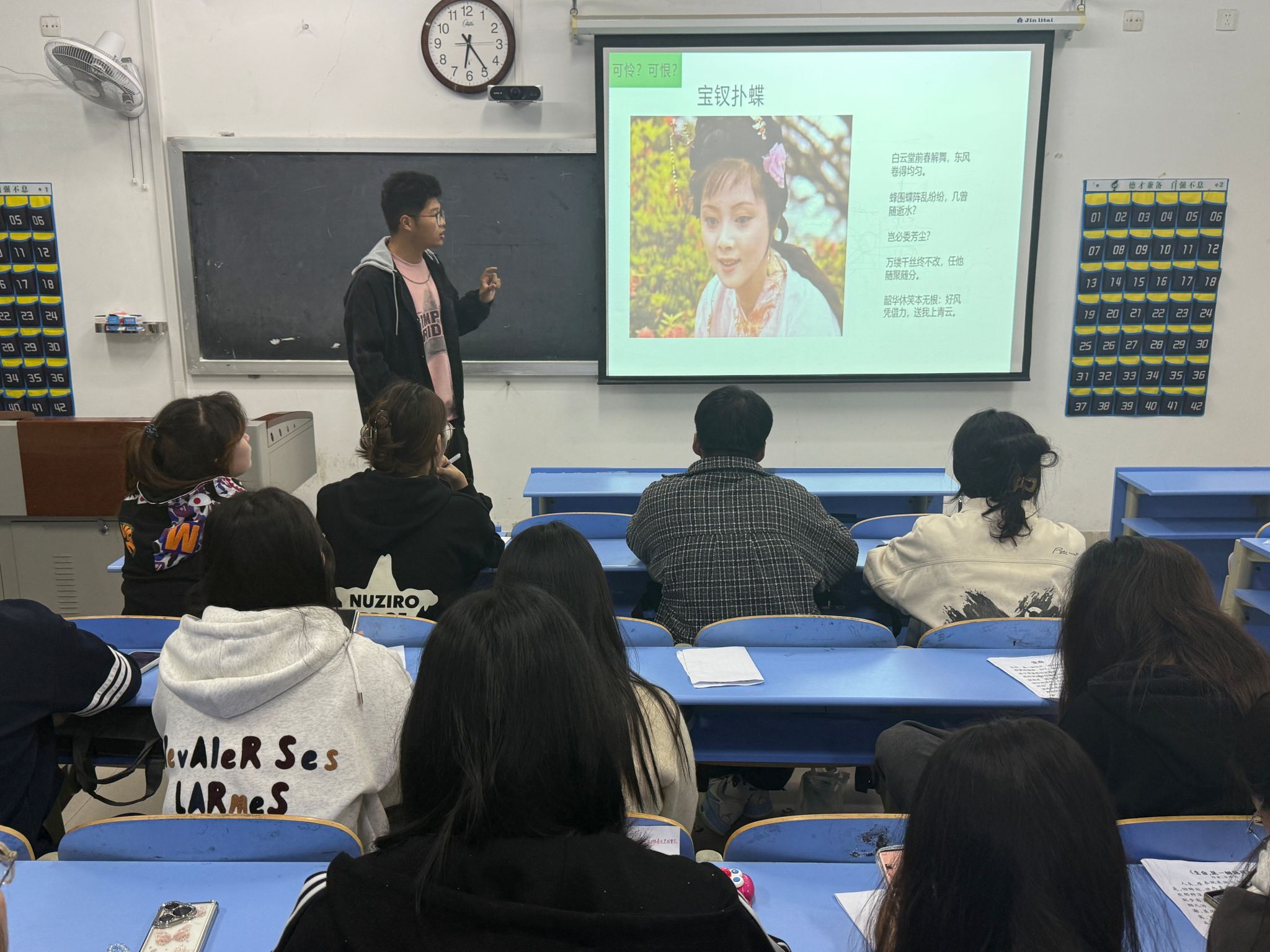 “四壁琳琅皆珍卷,万卷诗书溢书香”。小说作为一种重要的文学形式,不仅承载着丰富的历史文化底蕴,而且对个人的情感和思想能产生深远的影响,2024级政治学与行政学三班的学生代表解读了《红楼梦》中的东方女性群像,如林黛玉的才情横溢与悲剧命运、薛宝钗的端庄贤淑与深沉智慧、王熙凤的精明干练与悲剧收场、贾探春的独立自主与改革魄力。