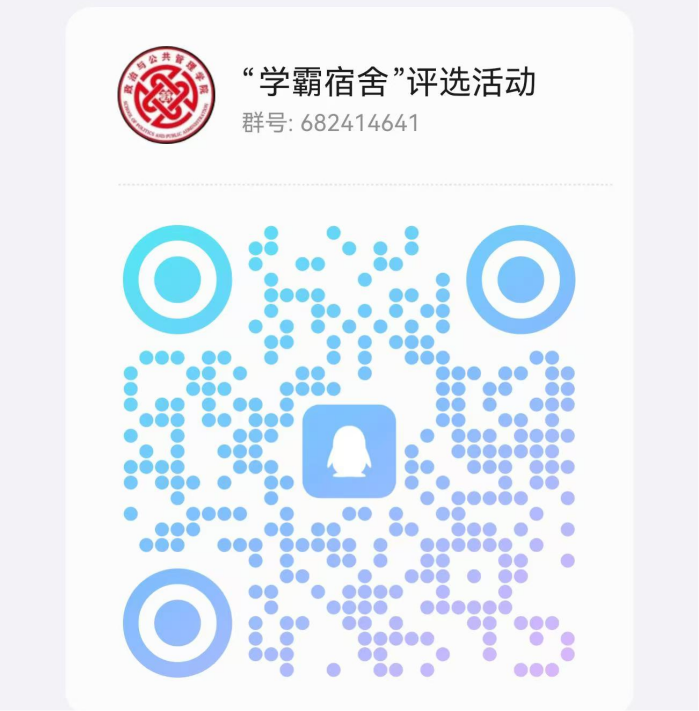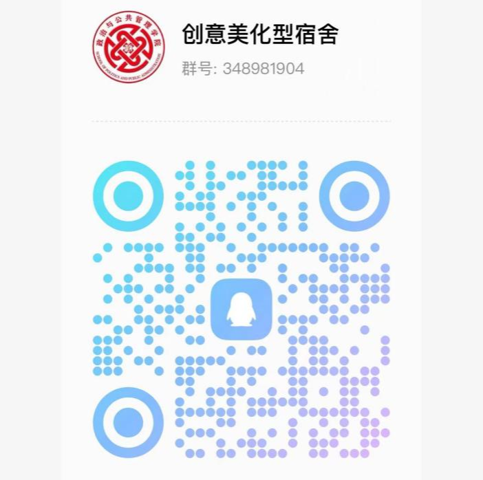 “文明宿舍”评选活动旨在激励同学们积极投身文明宿舍创建工作,争做文明宿舍的建设者、和谐环境的实践者、宿舍安全的监督者。让我们积极参与进来,用心维护个人空间,加强宿舍内务整理,养成良好思想道德、心理素质和行为习惯,共同营造一个清新、有序、宜人的学习与生活环境,展现属于政管学子的昂扬风采!活动详情请加入下方群聊。
