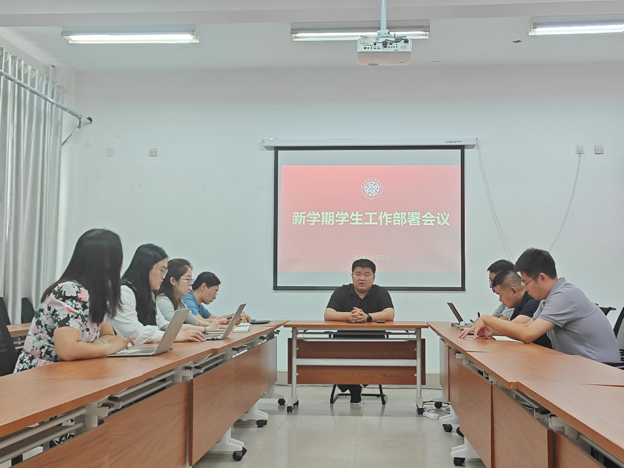 庞翠对2024级新生迎新工作任务、新学期学风教育等落实举措进行了详细说明,并从人员分工、工作职责、宿舍分配、迎新志愿者动员等方面就迎新工作进行了具体安排。会议要求,全体辅导员要加强对迎新工作和新学期学风建设的重视,各司其职,相互配合,共同完成新学期各项工作,多措并举扎实推进新学期学风建设。