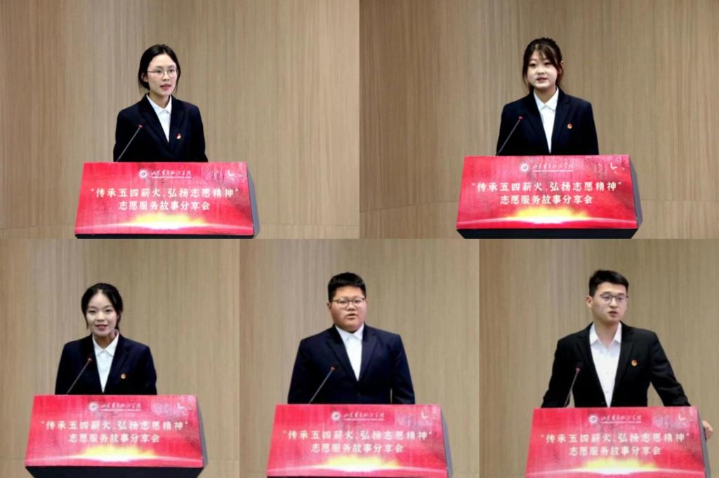 举五四火炬,展志愿风采。活动现场,志愿者代表张世辉汇报了学院2023年志愿服务工作开展情况。过去的一年中,学院发挥专业优势,链接多方资源,与华夏山青、帝华鸿府、鲁商凤凰城等20余个社区、单位签订大学生社会实践框架协议、建立大学生社会实践基地;各项志愿服务活动获得社会广泛好评。本次分享会上表彰了学院2023年度“优秀团员”“优秀团干部”“红旗团支部”“志愿服务先进个人”等先锋榜样。学院辅导员于晓光作总结发言,充分肯定了学院志愿者一年来取得的成就,并对获奖的团队和学生表示了热烈祝贺和殷切期望。