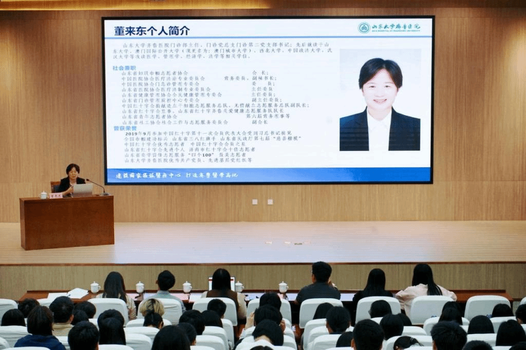 专家领航赋新能,志愿服务绽芳华。董来东受邀担任我院大学生社会实践导师,并就如何打造优秀志愿服务团队以及如何培育高质量志愿服务项目向大家作了精彩报告。她从自身参与志愿服务的初衷入手,结合齐鲁医院志愿服务队发起、成长、壮大具体实例,从改进管理理念、加强顶层设计、创新志愿服务队组织形式、优化团队内部协作等方面为同学们精心传授经验,并从专业角度就在当今开放的时代“如何从社会自然人变成一个社会公益人”这一话题进行了深入剖析。最后她鼓励青年学生应在全面了解志愿服务的基础上,不断学习专业知识、提高专业技能、发展创新思维、增强变革性领导力的加持,积极投身志愿服务,为新时代志愿服务事业的发展持续贡献青年力量。