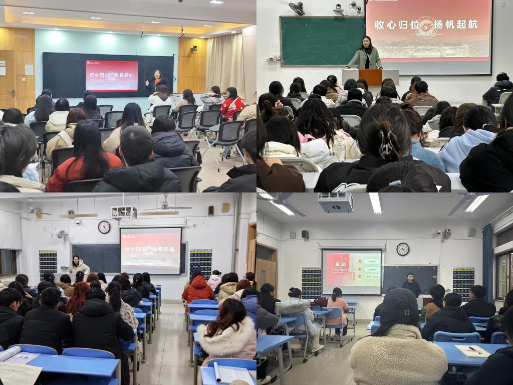 春晖渐暖肇新元,新始扬帆重开卷。本次主题班会从学习和生活等方面入手,紧密围绕学习规划、心理健康、校园安全、电信诈骗等方面展开。老师们肯定了同学们在“六个一”寒假学习实践中的优秀表现,鼓励同学们在新的学期继续前进,明确自己的学习目标,立足自身需求合理制定学业规划,利用课余时间多读书,读好书,注重跨专业书籍的阅读,从书中获取解决问题的办法;老师们引导同学们要处理好人际关系,互相关爱互相帮助,加强小组团队合作,牢固树立“相亲相爱一家人”的集体责任感和荣誉感。
