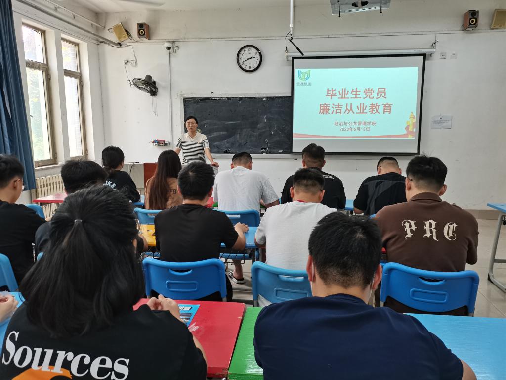 最后,为深入学习贯彻党的二十大精神,推进党风廉政建设,落实全面从严治党走深走实,庞翠向毕业生党员们进行了青廉课堂主题教育,带领毕业生党员集体学习《中国共产党廉洁自律准则》,深入学习党员廉洁自律规范,旨在引导毕业生党员们努力弘扬中华民族传统美德,廉洁自律,接受监督,从思想上筑牢拒腐防变思想堤坝,在以后工作中坚持全心全意为人民服务的根本宗旨。