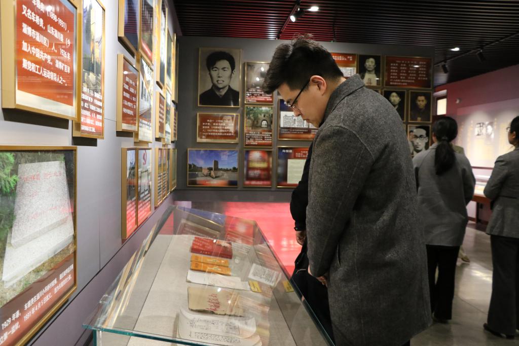 在讲解员的引领下,大家观看了《穿越时空的党课》,参观了“星星之火燎原齐鲁”“廿二烈士血洒刑场”“坚守信仰矢志不渝”“牢记使命砥砺前行”等主题展厅,详细了解了山东早期党组织发展与斗争的艰难历程和“四五”烈士波澜壮阔、荡气回肠的革命生涯。观展结束后,全体党员面向党旗,重温入党誓词,表达了对党的无限忠诚和时刻铭记新时代新使命的坚定信念。随后,党员们一起观看了红色纪录片《血沃春华——济南“四五”烈士祭》,重温了邓恩铭、刘谦初、郭隆真等22位“四五”烈士不屈不挠、为崇高理想奋斗牺牲的感人事迹。通过瞻仰一张张岁月斑驳的老照片、观看一件件写满忠贞的烈士遗物、聆听一段段动人心魄的故事,大家深切缅怀那段血雨腥风的峥嵘岁月,被革命先烈们矢志不渝、视死如归、献身革命的英勇壮举和追求真理、坚守信仰、不屈不挠的革命精神深深震撼和感染。
