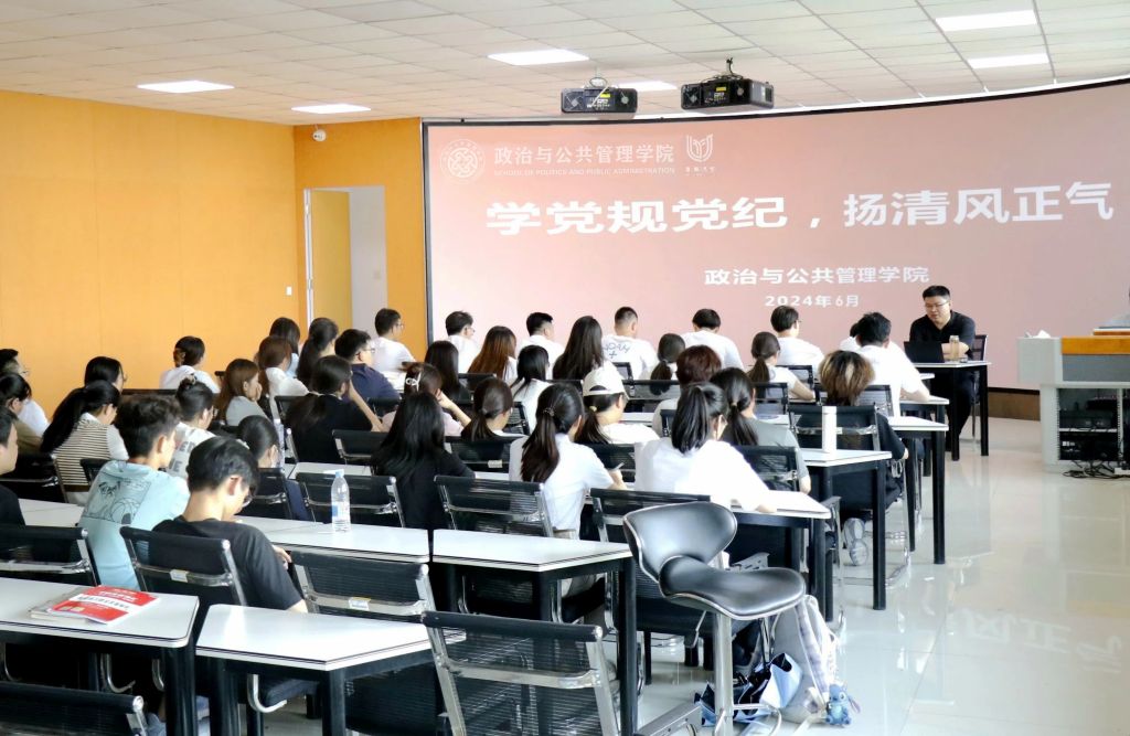 学校联系领导、学院领导班子成员面向师生党员开展党纪学习教育专题党课,不断增强党的纪律建设、推动全面从严治党向纵深发展。6月18日,学院开展党员过“政治生日”活动暨毕业生党员党纪学习教育党课,学校纪委副书记王三海以《深入学习<中国共产党纪律处分条例>,做学纪、知纪、明纪、守纪的新时代党员干部》为题,面向毕业生党员上专题党课,以众多“身边人”“身边事”的违纪违法案例,引导毕业生党员以案为鉴,以案明纪,进一步强化毕业生党员政治意识,纪律意识,规矩意识和廉洁意识,系好廉洁自律的第一粒扣子;学院党委书记王正坤、党委委员卢鹏程分别面向学生党员、教工党员上专题党课,教育引导师生党员用党规党纪校正思想和行动,真正使学习党纪的过程成为增强纪律意识、提高党性修养的过程。