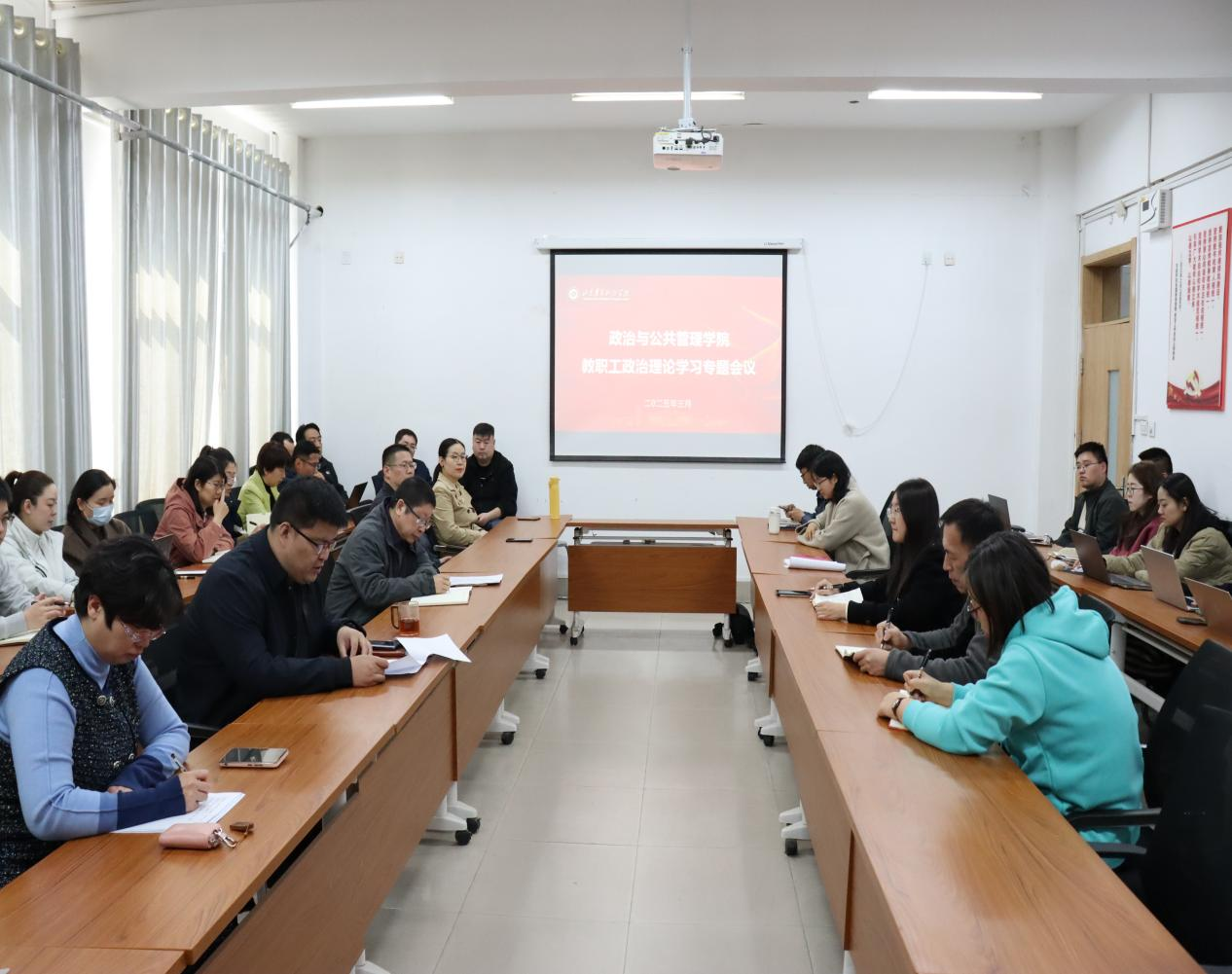 王正坤在领学时表示,全面从严治党是学院高质量发展的根本保障,也是每位教师肩负的政治责任。本次政治理论学习,既是对学校全面从严治党工作会议精神的深入学习宣传,也是对学院全面从严治党工作的一次再动员、再部署。结合学院2025年重点工作和学习任务,他指出:一要提高政治站位,深刻领会全面从严治党的新形势、新要求。领导班子要扛起“一岗双责”,各党支部、各教研室、各科室要种好“责任田”,全体教师要守好课堂主阵地;二要创新学习形式,在学深悟透上下功夫。各教研室要围绕学科专业建设、课程改革、教学质量提升等工作任务,探讨如何在教学、科研等工作中贯彻全面从严治党精神;各党支部要开展特色主题党日活动。全体教师要对标学,重点检视是否存在“学术行为不规范”等问题;三要聚焦重点领域,筑牢发展安全防线。要守好意识形态阵地,要严格执行“一会一报”制度,对教材选用、学术讲座、网络言论、互联网群组等加强过程管理。四要强化责任落实,确保工作见行见效。要建立全面从严治党主体责任清单,领导班子成员要更好履行“一岗双责”,对照责任清单督导落实全面从严治党工作。