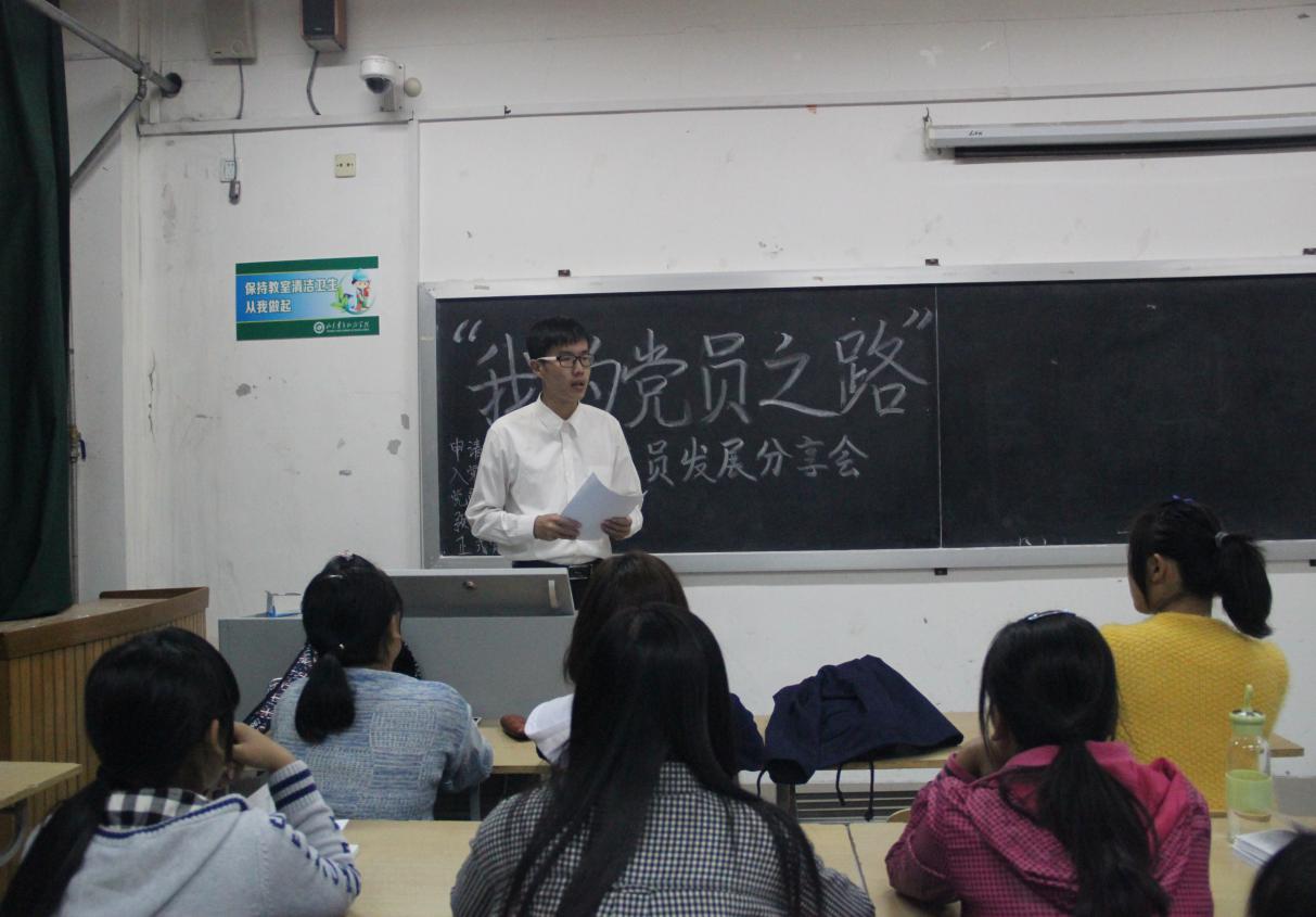 分享会上,各个学生党员结合自身实际,通过视频展播与现场讲解结合的方式,与2015级同学分享自己的入党心路历程。有的学生党员从学院党建工作和学生党员发展的角度出发,叮嘱大家不仅要在组织上入党,更要在思想上入党;有的学生党员从党性要求的高度着眼,强调学生党员要时刻注意个人品行,加强学习,提升个人政治素养,砥砺个人思想品质;还有的学生党员鼓励大家勇于尝试,积极参加学院建设,携起手来共同进步。