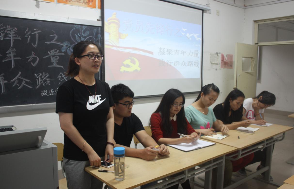 5月19日晚,政法学院学生第二党支部在文外楼106室举办了 “党员先锋行——凝聚青年力量•践行群众路线”主题党日活动。此次主题活动由第二党支部党员董雪莹主持,第二党支部书记刘磊老师、该支部全体成员和政法学院部分学生参加了此次活动。
