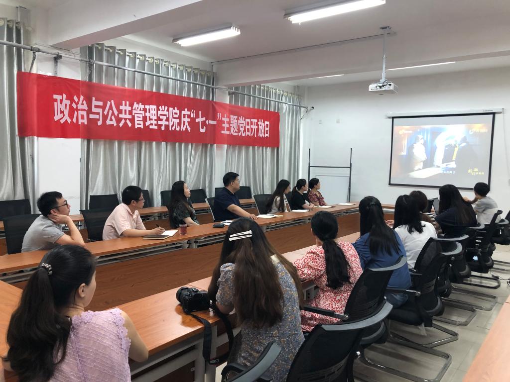 在中国共产党成立99周年来临之际,结合学校“我来讲党课”活动,7月1日,政管学院党总支开展了庆“七一”主题党日开放日活动。本次活动共分三部分,分别是观看“灯塔大课堂”、“学习榜样事迹、感受榜样力量”心得交流会以及上党课三个环节。
