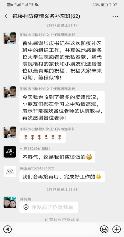 针对性的课业辅导,多彩的第二课堂活动,丰富了孩子们的居家生活学习,也令在外务工的家长倍感安心。“这些大学生志愿者每次教完孩子都会在微信上跟我总结孩子当天所学知识的掌握情况,有哪些优点和不足,我对他们很放心,感觉孩子自信了很多,眼里也有神采了,很感谢”。五年级小学生博涵的妈妈在支教微信群里点赞志愿者。