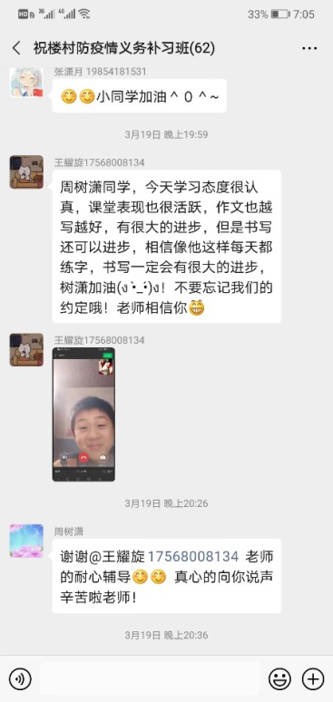 72名志愿者在通知下达2小时内集结成队,并迅速进行任务分工,课业需求调查、设计课程、调试网络、备课讲课等各项工作紧张有序的开展。学生党员李雪凝在得知此事后第一时间请战参加并积极组织发动,“得知可以再次‘见到’祝楼村熟悉的孩子们,我毫不犹豫就选择支持和参与此事,为了上好第一堂课,我提前一周就开始准备资料、调试网络,向家长了解孩子的兴趣爱好和学习短板,做到心中有数。”“最难忘的就是讲课时视频另一端的那双眼睛,亮晶晶的,如同在阳光照耀下,爱与希望在眼里生根、发芽。为了不辜负学生及家长的信任,我一边完成自己的学业任务,一遍抽出时间认真备课、讲课”。支教骨干2017级政治学与行政学专业朱学友说。