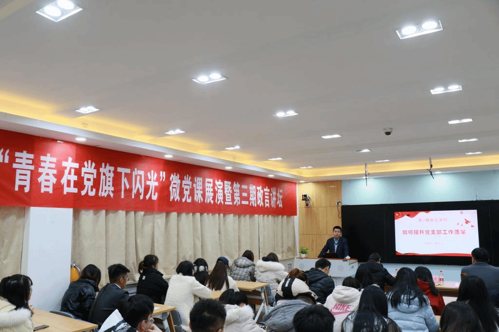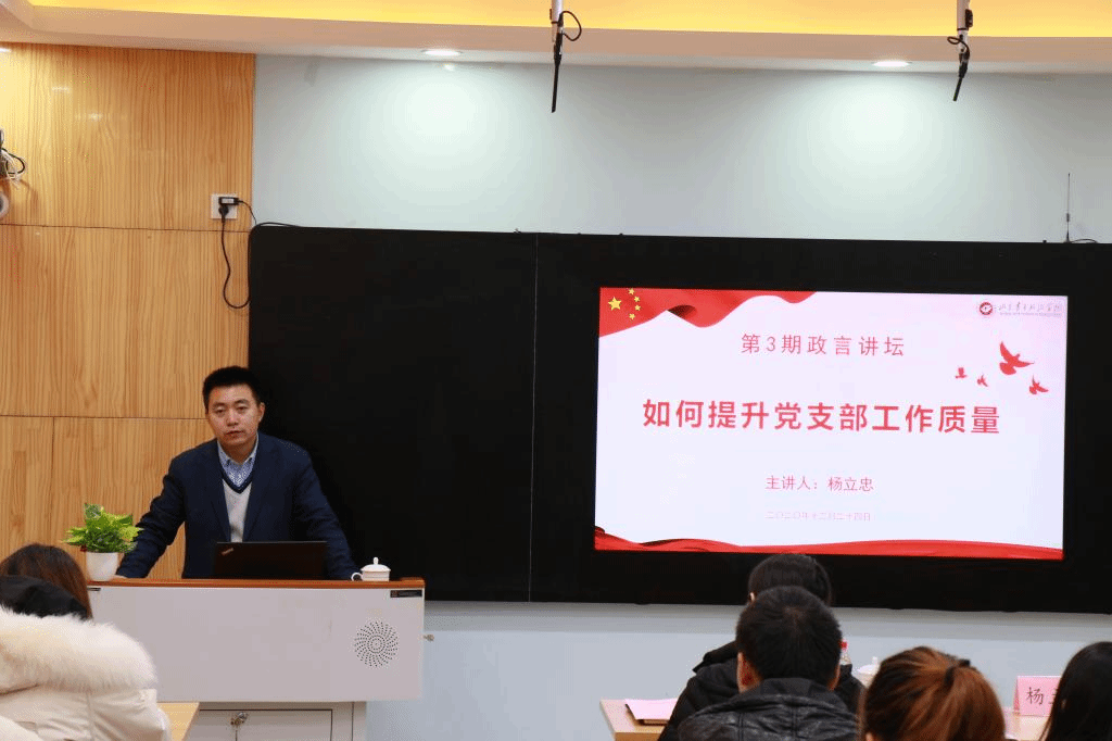 为进一步巩固深化“我来讲党课”教育活动成果,增强党课吸引力,切实提高党支部组织生活质量,12月24日下午,yl8858永利集团在敏行楼社会工作实验室举行了“青春在党旗下闪光”微党课展演暨第三期政言讲坛。活动特别邀请了山东财经大学组织部副部长杨立忠为活动点评并做《如何提升党支部工作质量》专题报告。yl8858永利集团党总支书记丁萍、副书记王正坤、各党支部全体委员及部分师生党员参加了本次活动。