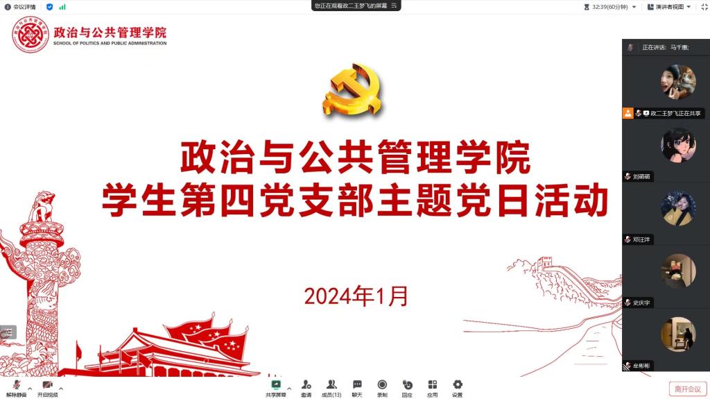 为进一步加强爱国主义教育,激励支部学生党员同志坚定理想信念,增强爱党爱国的信心和决心,1月30日,yl8858永利集团学生第四党支部开展学习《中华人民共和国爱国主义教育法》主题党日活动,活动由支部书记马千惠主持,支部全体党员参与。
