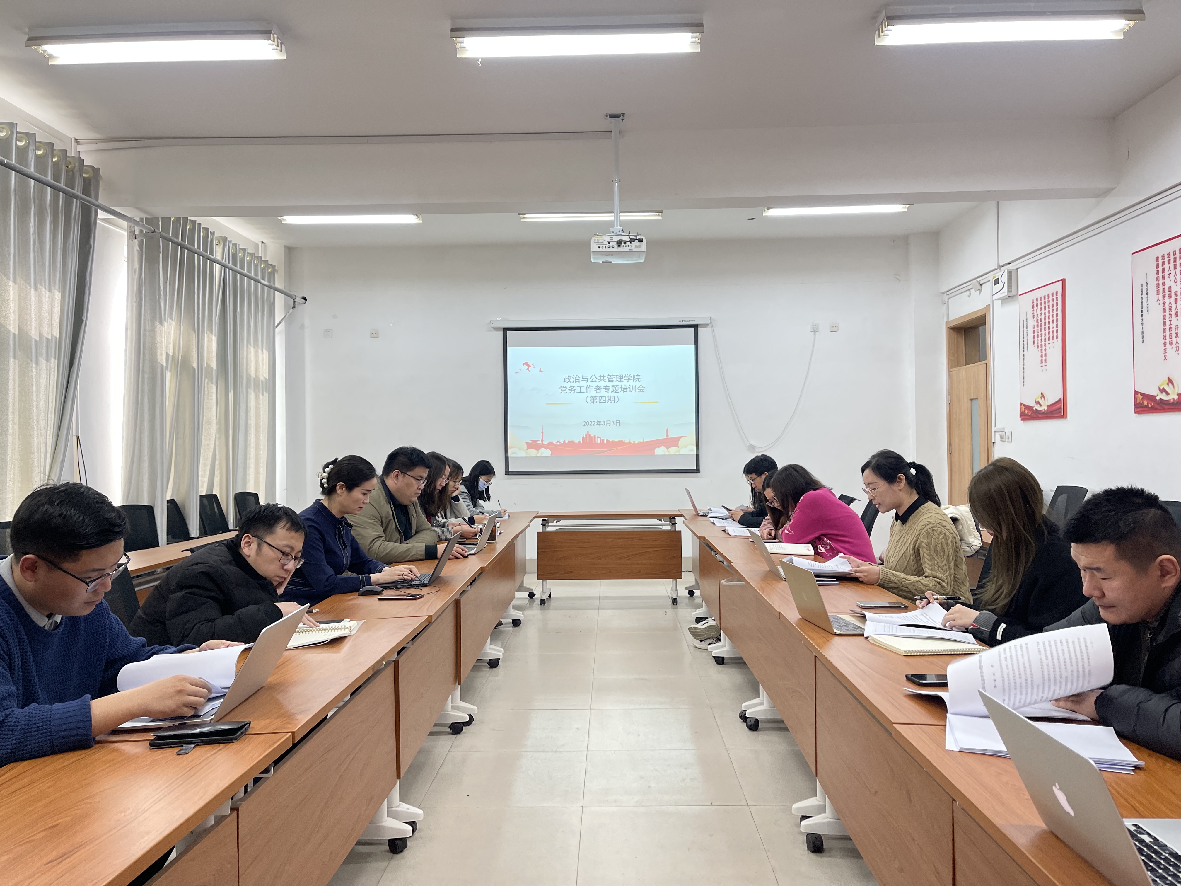 2020年3月3日,yl8858永利集团在敏行楼104会议室召开第四期党务工作培训会,学院党委书记丁萍主持会议,学院组织员、各党支部书记、纪检委员、组织委员、宣传委员参加了培训会。
