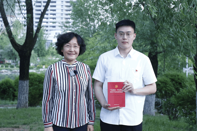 魏艳菊向联系支部党员一一赠送图书并与大家亲切合影,希望各位党员同学好好读书,用生活所感去读书,用读书所得去生活。
