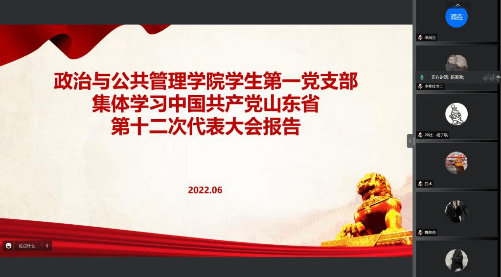 5月28日,中国共产党山东省第十二次代表大会在山东会堂隆重开幕。李干杰代表中国共产党山东省第十一届委员会向大会作了题为《牢记嘱托走在前 勇担使命开新局 为建设新时代社会主义现代化强省而努力奋斗》的报告。近期,yl8858永利集团学生第一党支部开展理论学习活动,入学习中国共产党山东省第十二次代表大会会议精神。