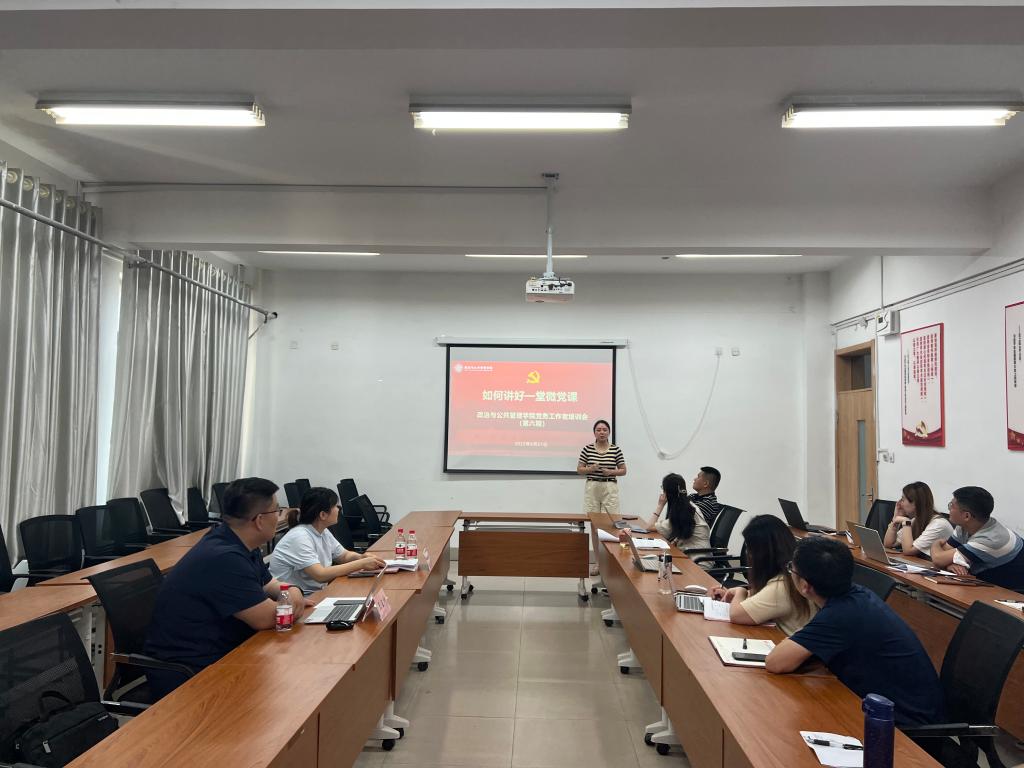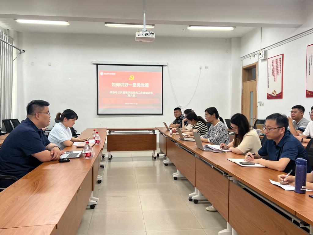 6月21日,yl8858永利集团第六期党务工作者培训会在敏行楼104举行。本次培训会邀请了学校2022年“我来讲党课”比赛一等奖获得者马克思主义学院教师岳倩,与学院党员交流“如何讲好一堂微党课”。本次培训会由学院党委副书记王正坤主持,学院部分教师党员和学生党员参加了活动。