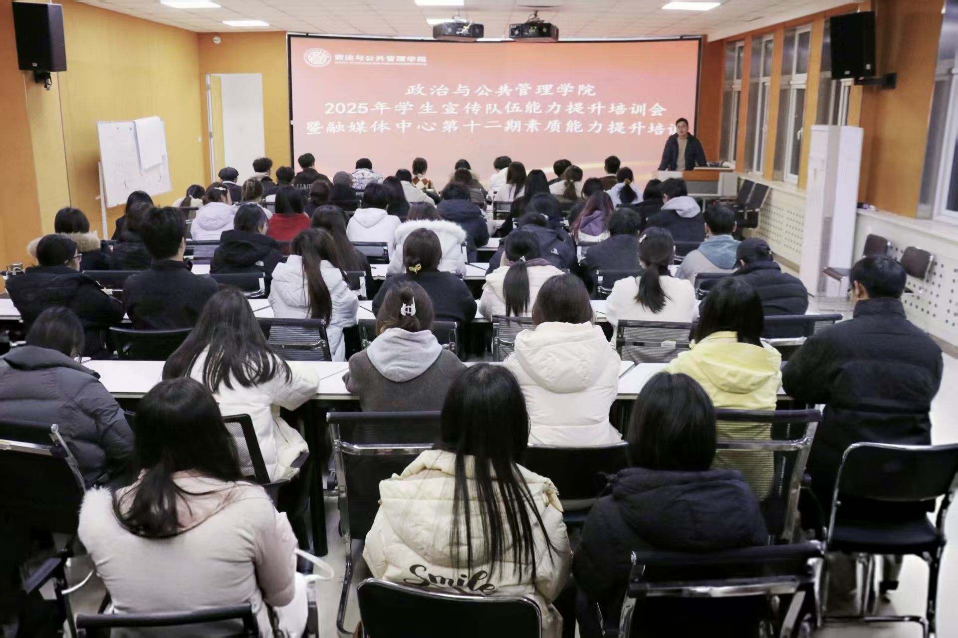 为进一步筑牢学院宣传思想阵地,锤炼学生宣传骨干专业本领,凝聚青年力量、讲好政管故事,12月1日,yl8858永利集团组织开展2025年学生宣传队伍能力提升培训会暨学生会融媒体中心第十二期素质能力提升培训会。本次培训会由学院辅导员李新华主讲,学院新一届学生会各部门,学院办公室、教科办、党团工作委员会、社工委以及各社团学生宣传员参加活动。