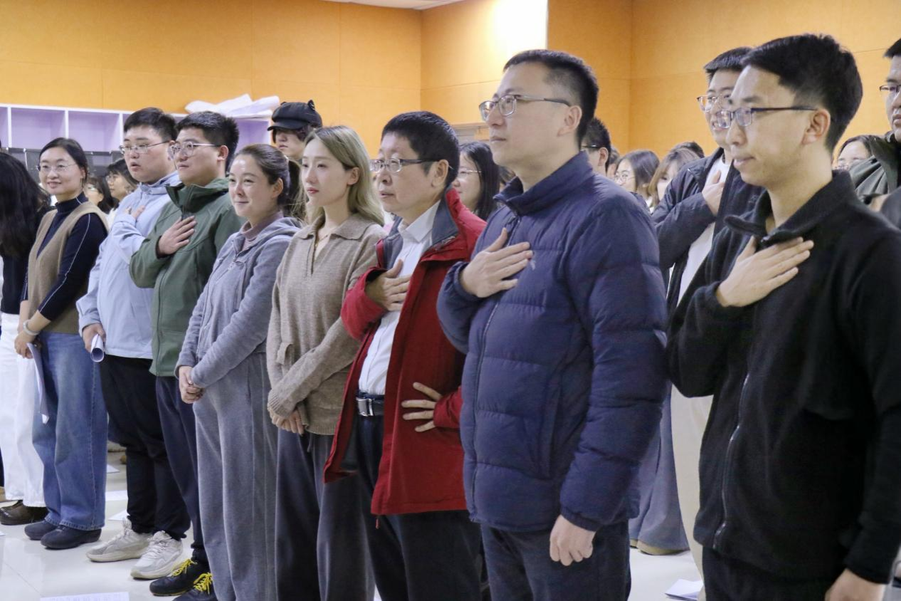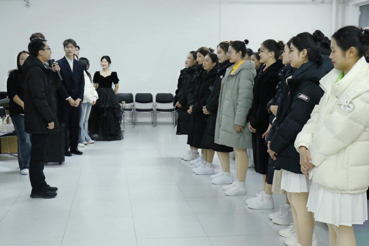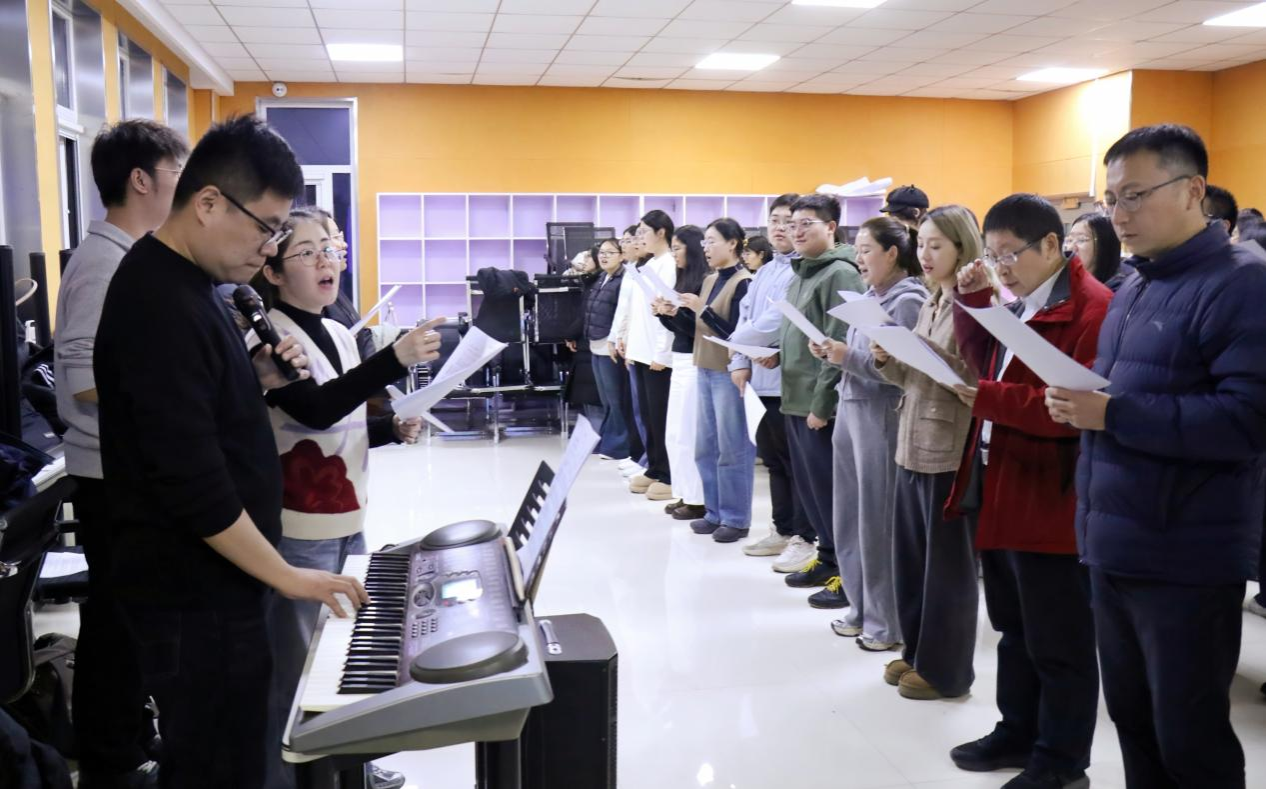 成功展演的背后,是学院的高度重视与全情投入,更是一场师生并肩作战、凝心聚力的生动实践。自接到展演通知以来,学院高度重视,迅速将其作为一次深化爱国主义教育、凝聚师生力量的重要契机。为确保活动高效有序开展,学院专门成立合唱工作专班,从人员组织、排练协调、后勤支持等方面进行周密部署,为合唱团的排练与演出提供全方位的坚实保障。师生们克服教学任务繁重、时间协调难、学习任务重等多重压力,利用课余和晚间休息时间全身心投入到每一次排练中。指导老师们从发声技巧到情感表达,从队形编排到动作设计,不厌其烦地进行示范与讲解,引导师生将专业的艺术要求与真挚的家国情怀注入每一个乐句。排练室里,悠扬的音乐声、嘹亮的歌声与老师们悉心的指导声交织在一起,构成了一曲动人的“奋斗交响乐”,不仅让师生情谊在歌声中升华,更让“一。二九”运动所蕴含的爱国精神在每一位参与者心中深深扎根。