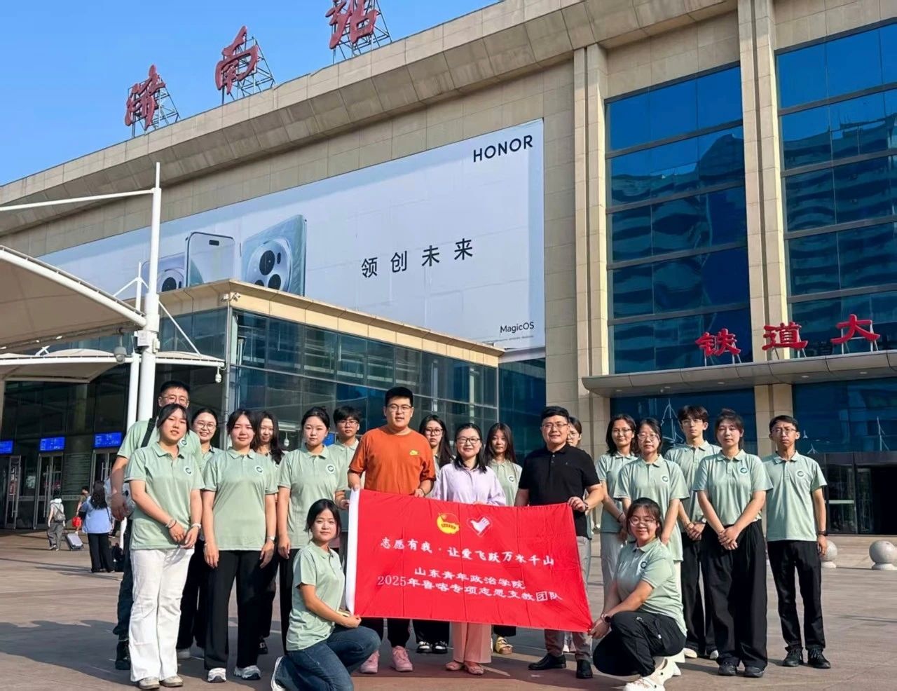支教传薪,生态润绿。回望过去一年,学院志愿者积极走进基层,为乡村留守儿童、边远地区儿童的学习生活增添色彩,“鲁喀同梦,石榴花开”支教团用专业与爱心为边疆孩子带去知识与希望,使发展的种子在这片热土上落地生根;“助梦”支教团走进临沂费县,创建“1+7+N”支教体系,助力青少年健康成长。在守护绿水青山的行动中,传统美韵协会联合章丘黄河河务局成功开展“青春‘河’力,守护碧水清流”巡河活动,深入挖掘黄河文化蕴含的历史文脉与精神内核,让千年黄河文化在继承中发展;公共管理协会举办“万里同心,共护黄河”闯关活动,精心打造串联“知识、文化、协作”的沉浸式体验赛道,为黄河文化的传承与生态保护注入青春动能。志愿者们以青年之力,筑黄河生态屏障,为生态保护汇聚更多坚实的青年力量,并在支教路上书写教育温度,在乡村大地上点燃更多梦想——从乡教启智到生态铸魂,这抹“希望绿”正点亮着乡村孩子的求知路,书写着生态改善的新篇章。