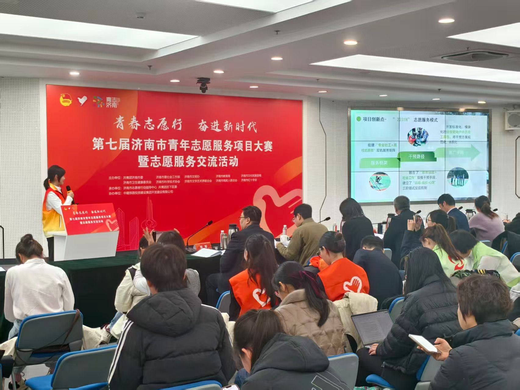 赛事筑梦,蓝海护航。2025年,学院志愿者积极投身赛会服务,为多项大型活动的顺利开展提供了坚实保障。在济南(泉城)马拉松现场,他们坚守补给站为选手分发物资、加油助力;在第二届山东省红十字志愿服务项目大赛中,他们不仅承担会场引导、流程控制等基础服务,更发挥专业特长,协助参赛团队进行案例展示、协调现场计时与答辩环节,保障了赛事的专业性与流畅度;在2025届毕业生春、秋季就业双选会现场,他们耐心引导、热情协助,为用人单位与毕业生搭建了高效沟通的桥梁。每一场活动,他们都以专业、高效与热情保障着活动的顺利运行,“志愿蓝”也成为了活跃在赛会现场的一道独特而温暖的风景,诠释着新时代青年志愿者的责任与担当。