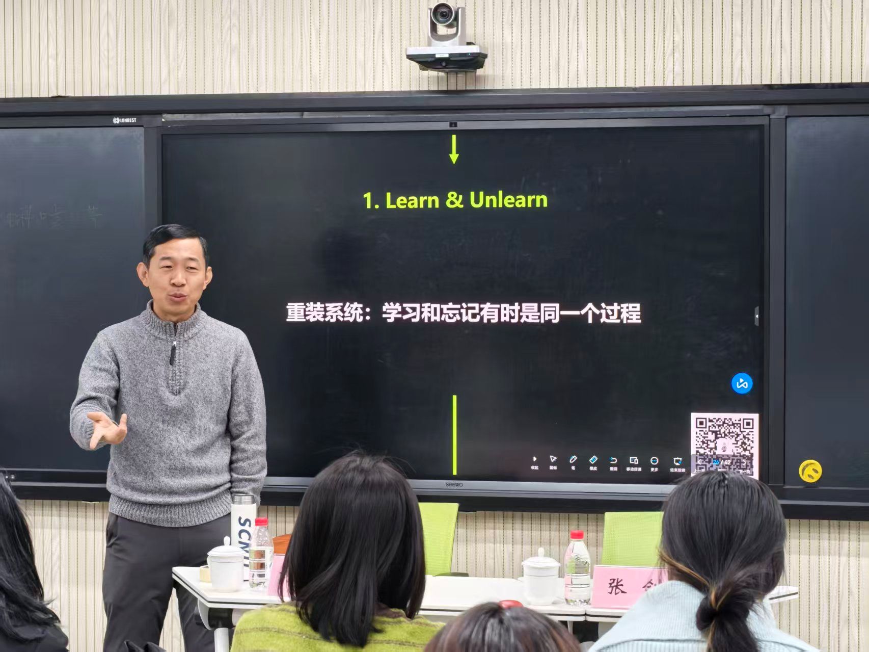 讲座中,刘军强教授结合自身成长经历,以“有没有顺遂的人生”“是否可以打乱人生历程的设置”等问题入手,生动解析了当前社会竞争环境下个体的成长困境与破局思路。他提出 “学习与成长是一个动态整合的过程” 的核心观点,勉励在场师生跳出单一评价框架,在多元价值体系中锚定自身坐标,以 “自我赋能” 取代 “同质化赛道竞争”,引发了师生们的强烈共鸣。此外,刘军强教授还围绕 “学习与遗忘”“爱与被爱”“幸福感提升” 等命题进行阐释,引导青年学生理性审视个人成长与社会发展的内在关联。