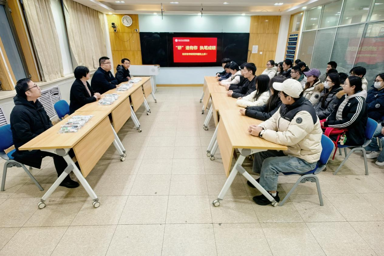 活动现场,杨克在讲话中勉励考研学子坚定信心、坚持到底。她指出,能够选择考研并坚持复习至今,本身就是对意志力的最好证明。最后阶段要保持平稳心态,注重知识梳理与要点巩固,从容迎接考试。王正坤代表学院向全体考研学子致以诚挚问候。他表示,备考过程中的每一份努力都不会被辜负,平日的积累正是迎战考场的坚实底气。他强调,在冲刺阶段,学院将持续关注学生学习与生活状况,积极提供学业指导和心理支持,做考研学子最坚实的后盾。
