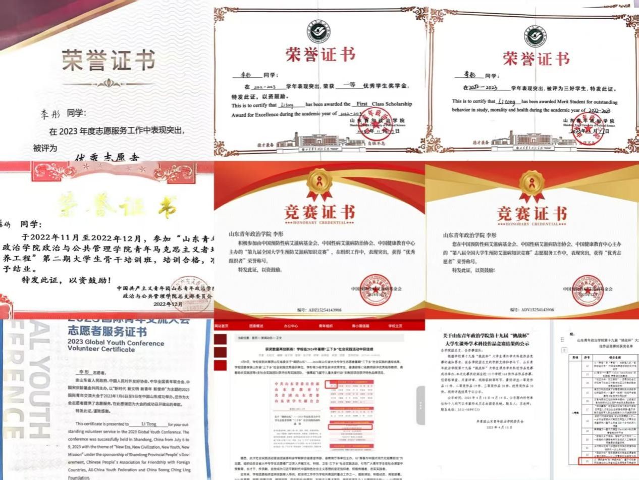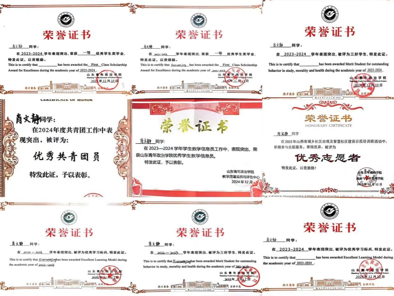 3.2023—2024学年 获山东省大学生心理学应用技能大赛一等奖;