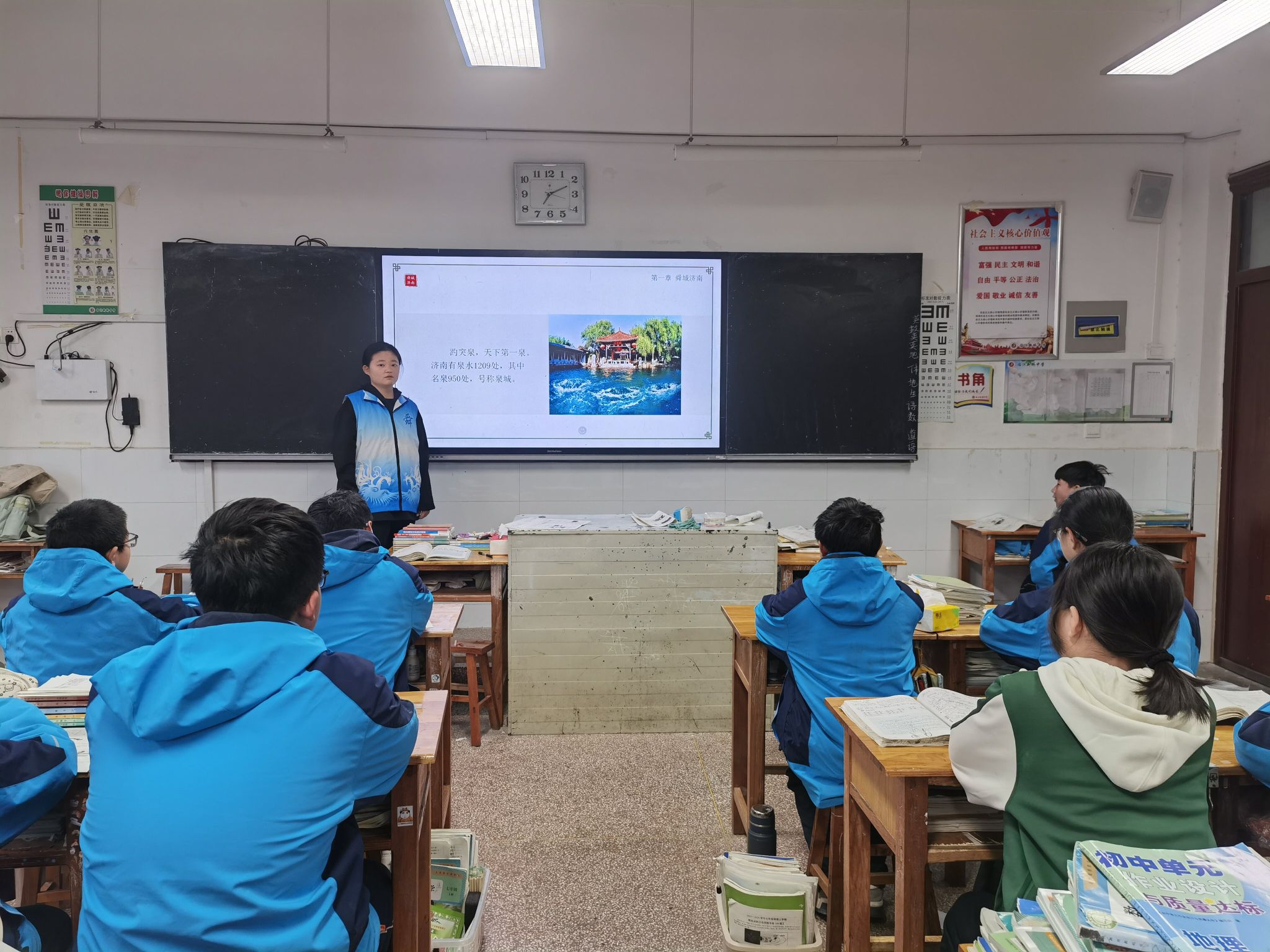 为让大舜文化真正融入青少年的生活,社会实践团队也带来了一系列鲜活的案例与互动环节。他们分享了当代社会中践行孝德的模范事迹,讲述了各地依托舜文化遗址开展研学活动、传承非遗技艺的生动实践。在问答环节中,同学们积极抢答关于大舜文化的趣味问题,在情景剧表演环节,大家更是化身“小舜帝”“百姓”,演绎出舜帝教化乡民的经典片段。一个个鲜活的故事、一次次有趣的互动,让厚重的传统文化变得生动鲜活,也让“崇德向善、孝老爱亲、担当奉献”的理念深深烙印在同学们的心中。