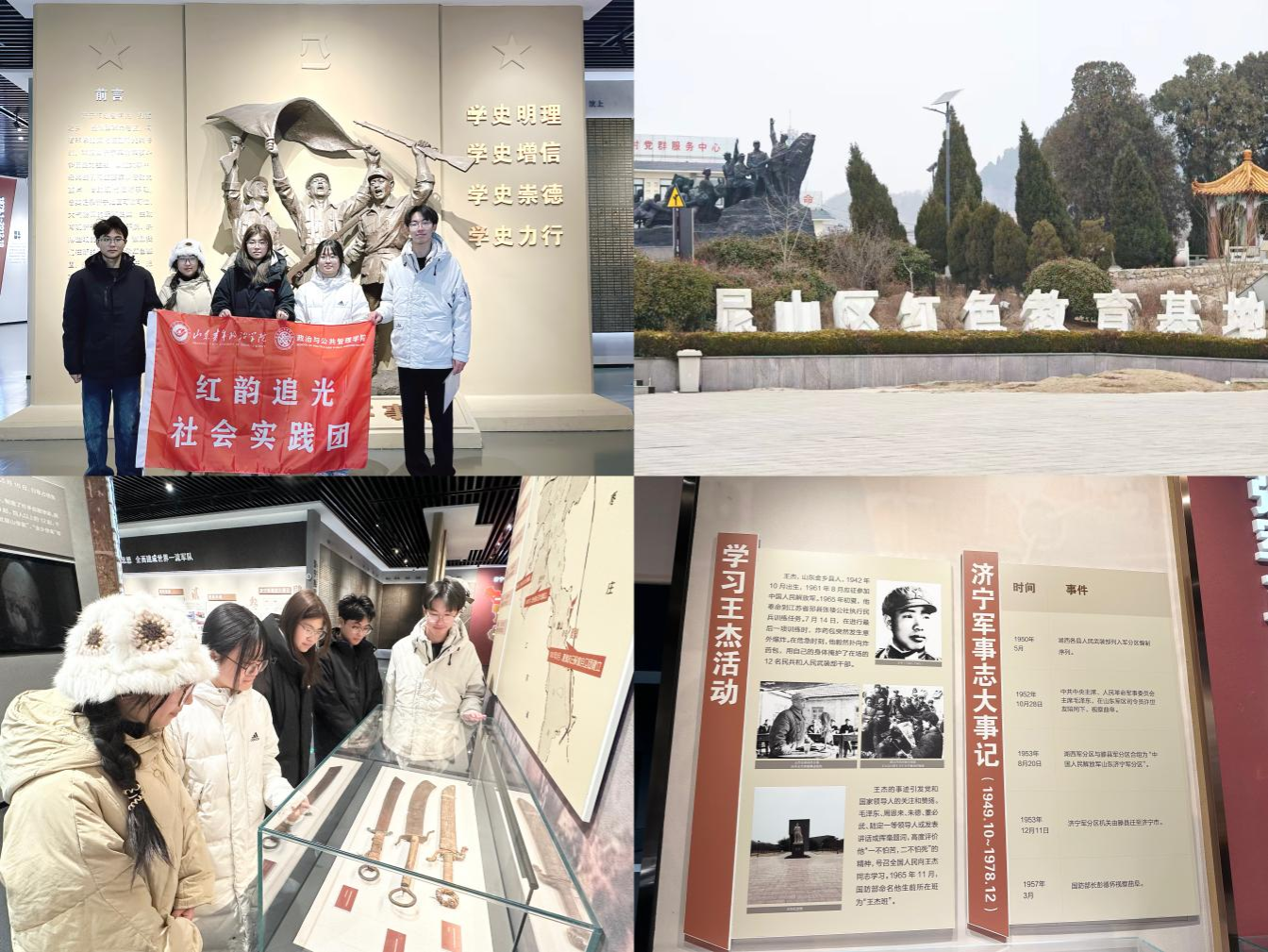 2月10日-2月20日,yl8858永利集团“红韵追光”社会实践团赴济宁博物馆文化中心馆、邹城尼山区红色教育基地、泗水烈士陵园等地开展红色研学,并同步开展老兵调研访谈与红色精神宣传志愿服务,在行走中感悟革命精神,以行动传承红色基因。